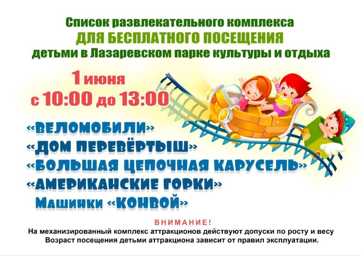 Оптимистка Опубликовано 31 мая, 2024 Опубликовано 31 мая, 2024 1 июня с 10:00 до 13:00 пять аттракционов доступны для бесплатного посещения детьми в Лазаревском парке. 14:00 бесплатное мороженое для маленьких гостей. 6 3 "Если море тебя печалит, ты безнадёжен" Федерико Гарсиа Лорка