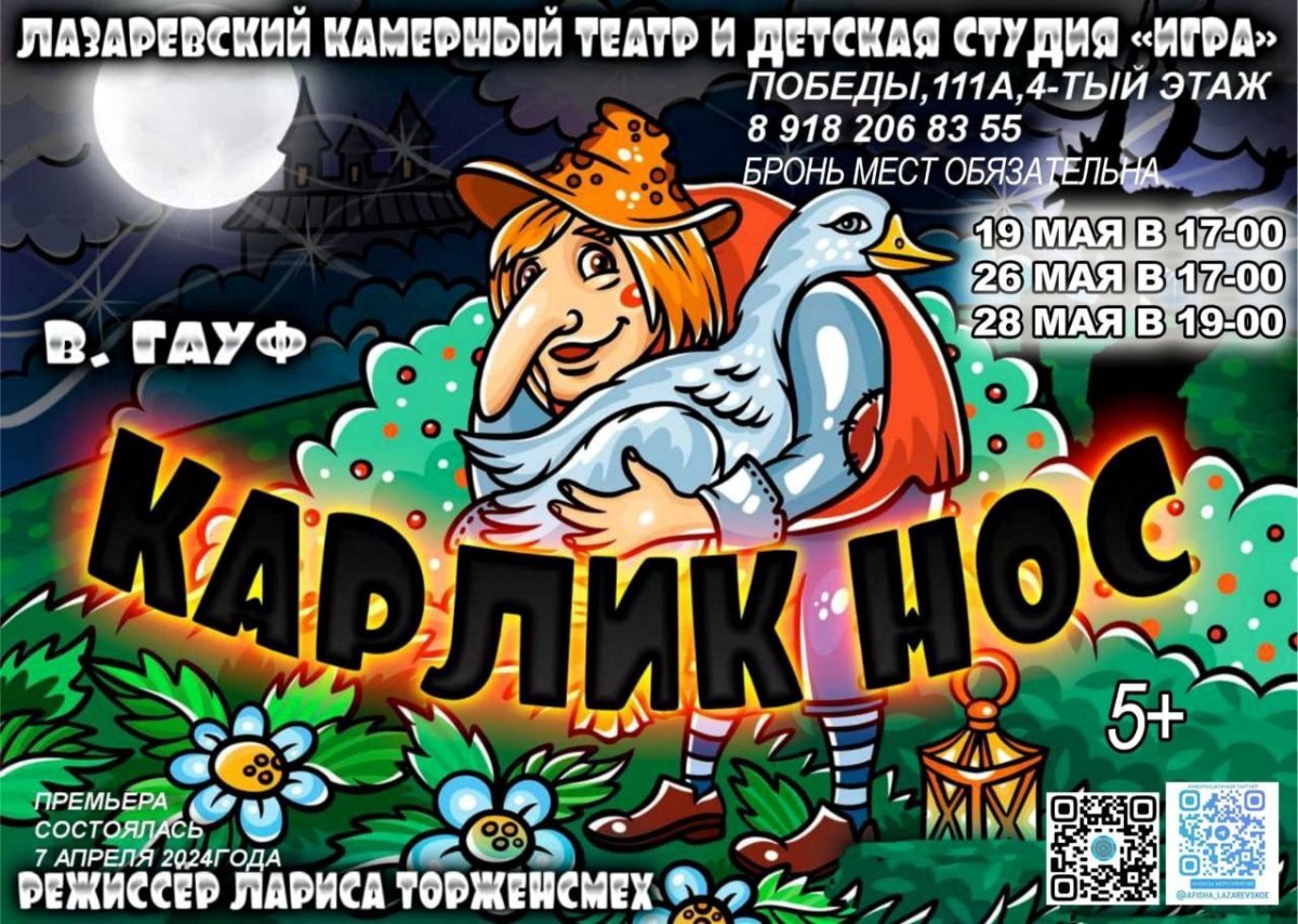 LuterDM Опубликовано 17 мая, 2024 Автор Опубликовано 17 мая, 2024 (изменено) Спектакль "Карлик нос" от детской студии "Игра" в Лазаревском Камерном театре. Спектакль философский, яркий и волшебный. Детский, но не для малышей. Рекомендуем для семейного просмотра с детьми от 5 лет и старше. Стоимость 300 руб. Заказ билетов +7 918 206-83-55 #19мая #26мая #28мая Изменено 17 мая, 2024 пользователем LuterDM 9 3 Игра на вылет!
