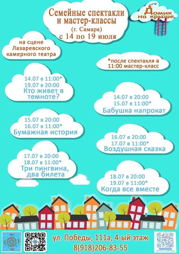 Оптимистка Опубликовано 9 июля, 2024 Опубликовано 9 июля, 2024 С 14 по 19 июля в Камерном театре детский репертуар. Вместе с театром из Самары радуемся спектаклям по сказкам и мастер классам по поделкам. В 11:00 спектакль и после него мастер класс. Стоимость билета 700 р. Вечером спектакли без участия мастер класса. Заказ билетов в ватцапе 89182068355 14июля в 11:00 и 20:00 15июля в 11:00 и 20:00 16июля в 11:00 и 20 :00 17июля в 11:00 и 20:00 18июля в 11:00 и 20:00 19июля в 11:00 и 20:00 6 3 "Если море тебя печалит, ты безнадёжен" Федерико Гарсиа Лорка