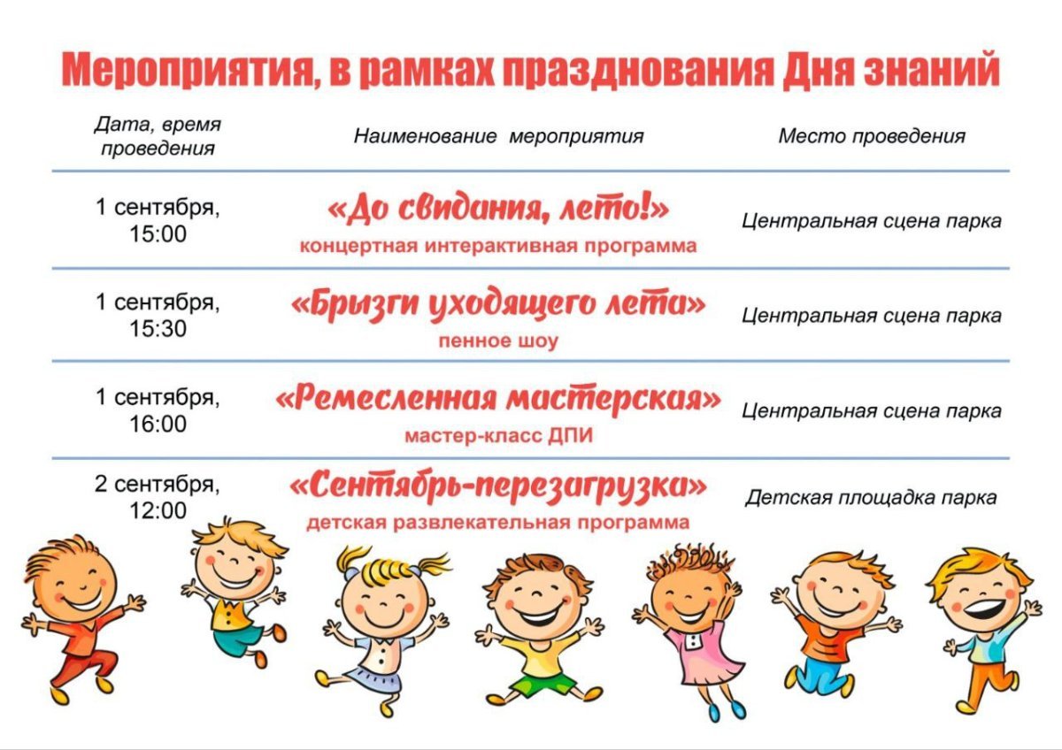 Оптимистка Опубликовано 30 августа, 2024 Опубликовано 30 августа, 2024 День знаний в парке! Приглашаем всех на праздничные мероприятия в честь Дня знаний! 🗓 1 сентября: 🕗 15:00 — «До свидания, лето!» — концертная интерактивная программа на центральной сцене парка. 🕗 15:30 — «Брызги уходящего лета» — пенное шоу, на центральной сцене парка. 🕗 16:00 — «Ремесленная мастерская» — мастер-класс декоративно-прикладного искусства на центральной сцене парка 🗓2 сентября: 🕗12:00 — «Сентябрь-перезагрузка» — детская развлекательная программа на детской площадке парка 2 2 "Если море тебя печалит, ты безнадёжен" Федерико Гарсиа Лорка