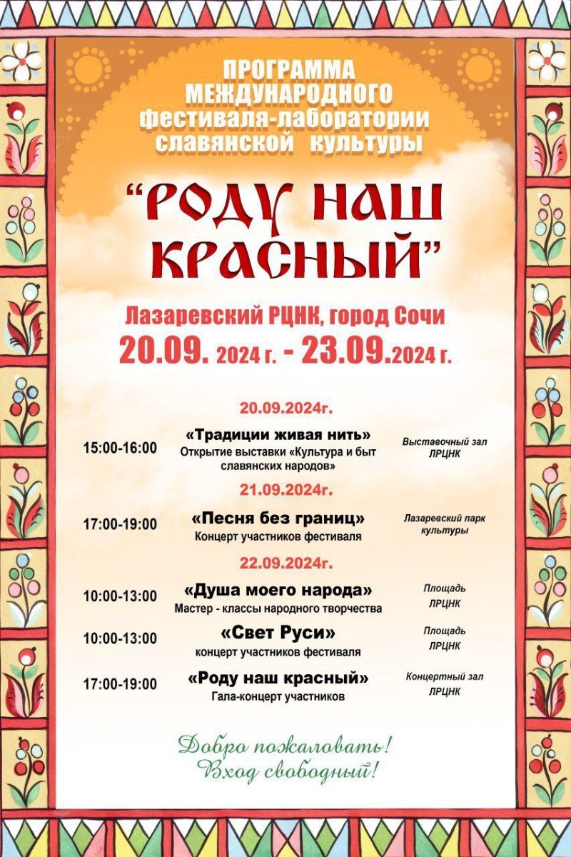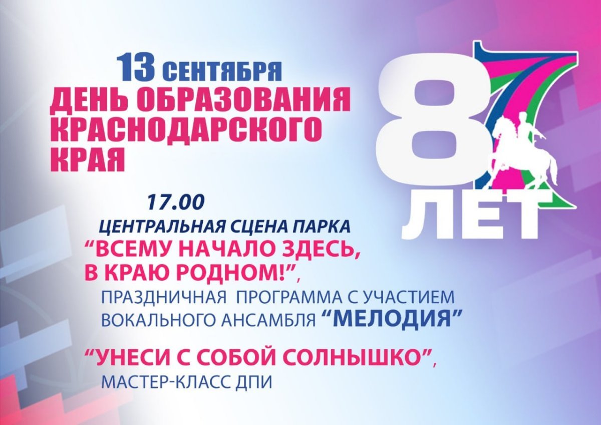 Оптимистка Опубликовано 12 сентября, 2024 Опубликовано 12 сентября, 2024 🎉Праздничная программа в Лазаревском парке! 🎉 🗓 13 сентября приглашаем всех на центральную сцену нашего парка, чтобы отметить День образования Краснодарского края! ⏰ В 17:00 начнется праздничная программа — "Всему начало здесь, в краю родном!" — с участием вокального ансамбля "Мелодия". 🎶 Нас ждет яркое выступление и музыка, которая окунет вас в атмосферу родного края. 🌞 Также рядом пройдет мастер-класс декоративно-прикладного искусства "Унеси с собой солнышко" — создаем солнечные сувениры своими руками! 3 2 "Если море тебя печалит, ты безнадёжен" Федерико Гарсиа Лорка