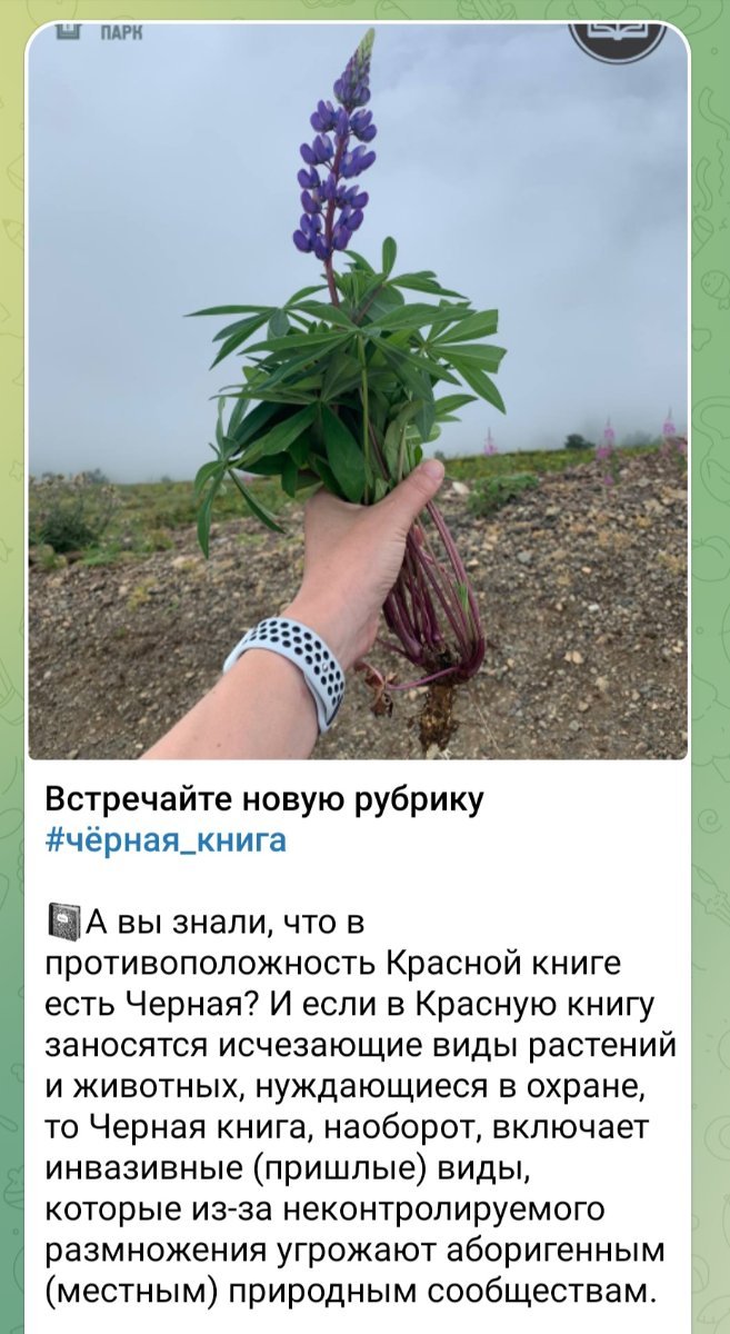 A_Ka Опубликовано 6 августа, 2024 Опубликовано 6 августа, 2024 Один из недавних пришельцев территории Сочинского национального парка - люпин многолистный (лат. Lupinuspolyphyllus Lindl) родом из Северной Америки. Он обладает мощной корневой системой, которая вытесняет местные растения, изменяя состав почвы и нарушая естественное равновесие экосистемы. Часто он заглушает другие растения, лишая их солнечного света и питательных веществ. Кроме того, в нем содержатся алкалоиды, которые могут быть опасны для травоядных животных. 🏔В Сочинском национальном парке произрастание люпина многолистного отмечено на горных курортах. Недавно растение было обнаружено на гребне хребта Аибга в районе курорта Альпика на высоте 2200 метров над уровнем моря. Распространение люпина в дикой природе вызывает опасения у специалистов. 9 2