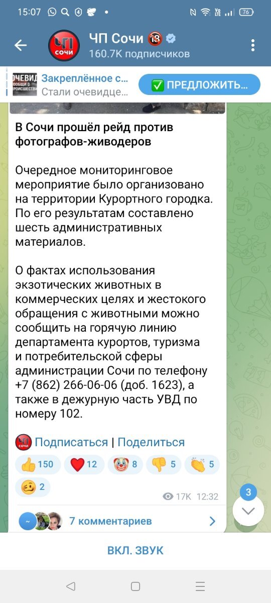 Добрый день, хотел поделиться случившейся ситуацией, вчера решили приехать отдохнуть к вам, сходить в океанариум, собственно нас там развели по полной, предложили сфотографироваться с экзотическими животными, озвучив при этом цену 500 рублей, ну мы и повелись, пока фоткались с обезьянкой нам подсадили еще двух попугаев, не обратили на это внимание, после окончания съёмки фотограф ушел печатать фотографии, прайс мы заметили пока ждали его, когда он вернулся предъявил сумму в 20 тыс рублей, пришлось оплатить, так не хотелось вступать в конфликтныю ситуацию, да и этих фотографов с напарниками внезапно оказалось слишком много вокруг нас, в общем и целом если вкратце, побоялся вступать в конфликт, облапошили как могли, конечно сами виноваты что повелись, но хотелось бы предупредить людей чтоб на нашем примере так же не лоханулись, а фотки теперь станут не очень хорошей памятью и скорее всего сожгутся.