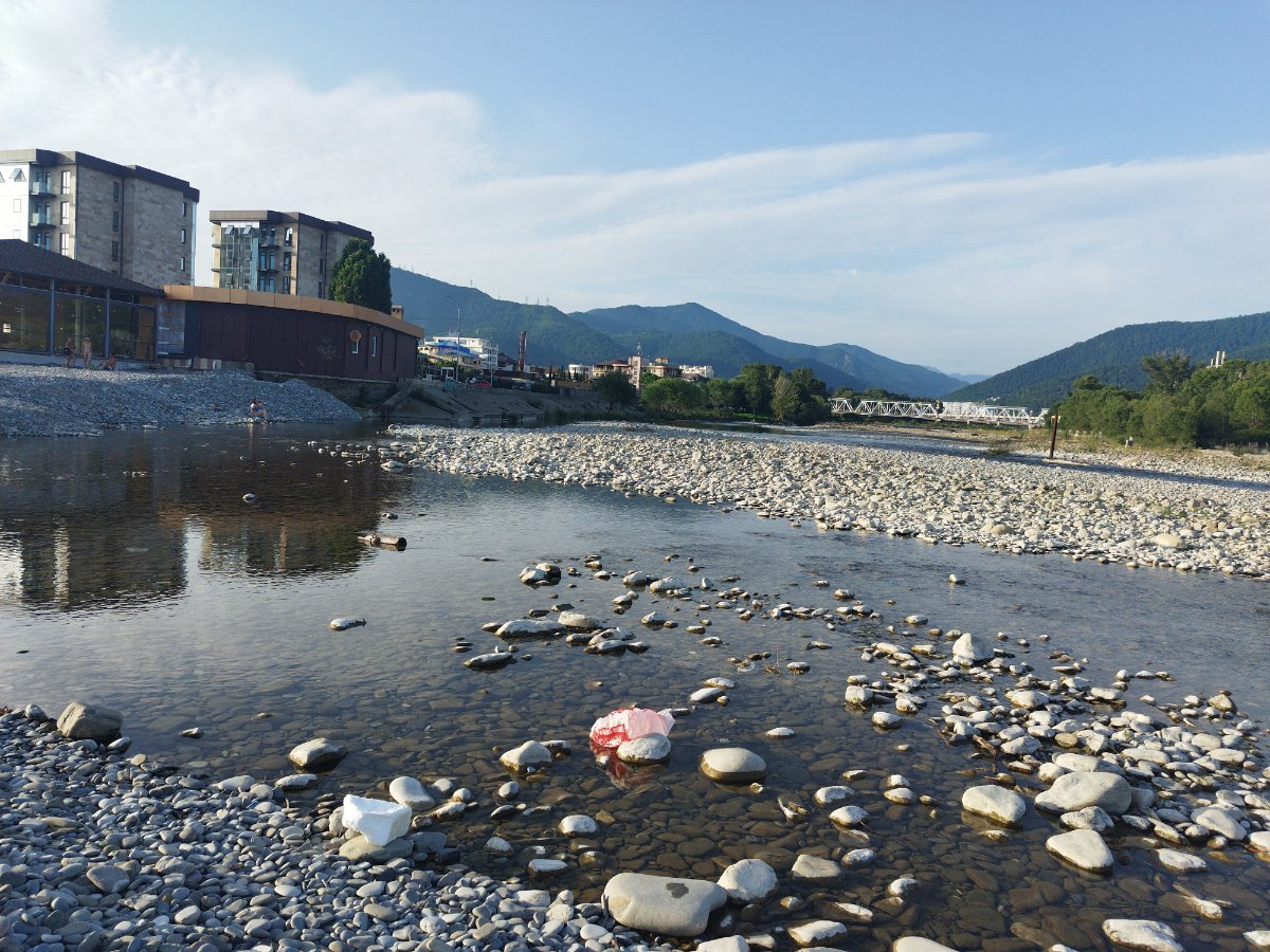 Сегодня у ЦНК подняли флаг России, вместо флага Сочи. Целая колонна байкеров с флагами и  песнями проехала со стороны Сочи по улицам Лазаревского и вернулась назад.