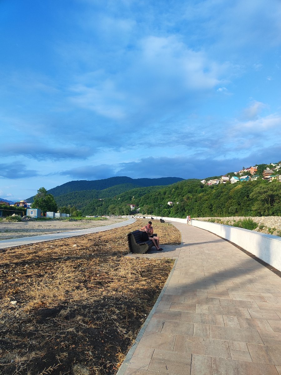 Вчера прогулялись по набережной реки. Очень красиво .Река оказалась намного теплее моря.