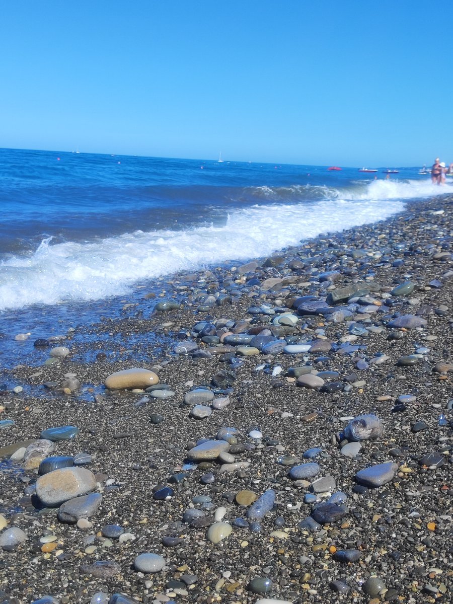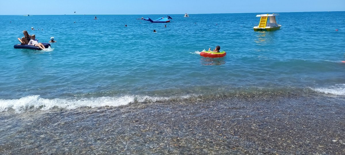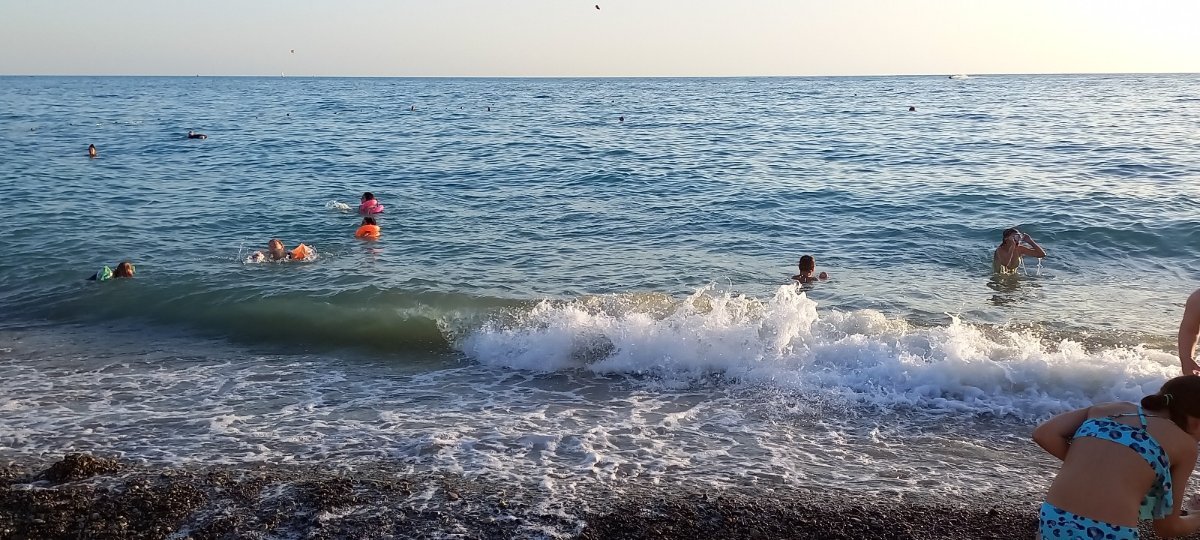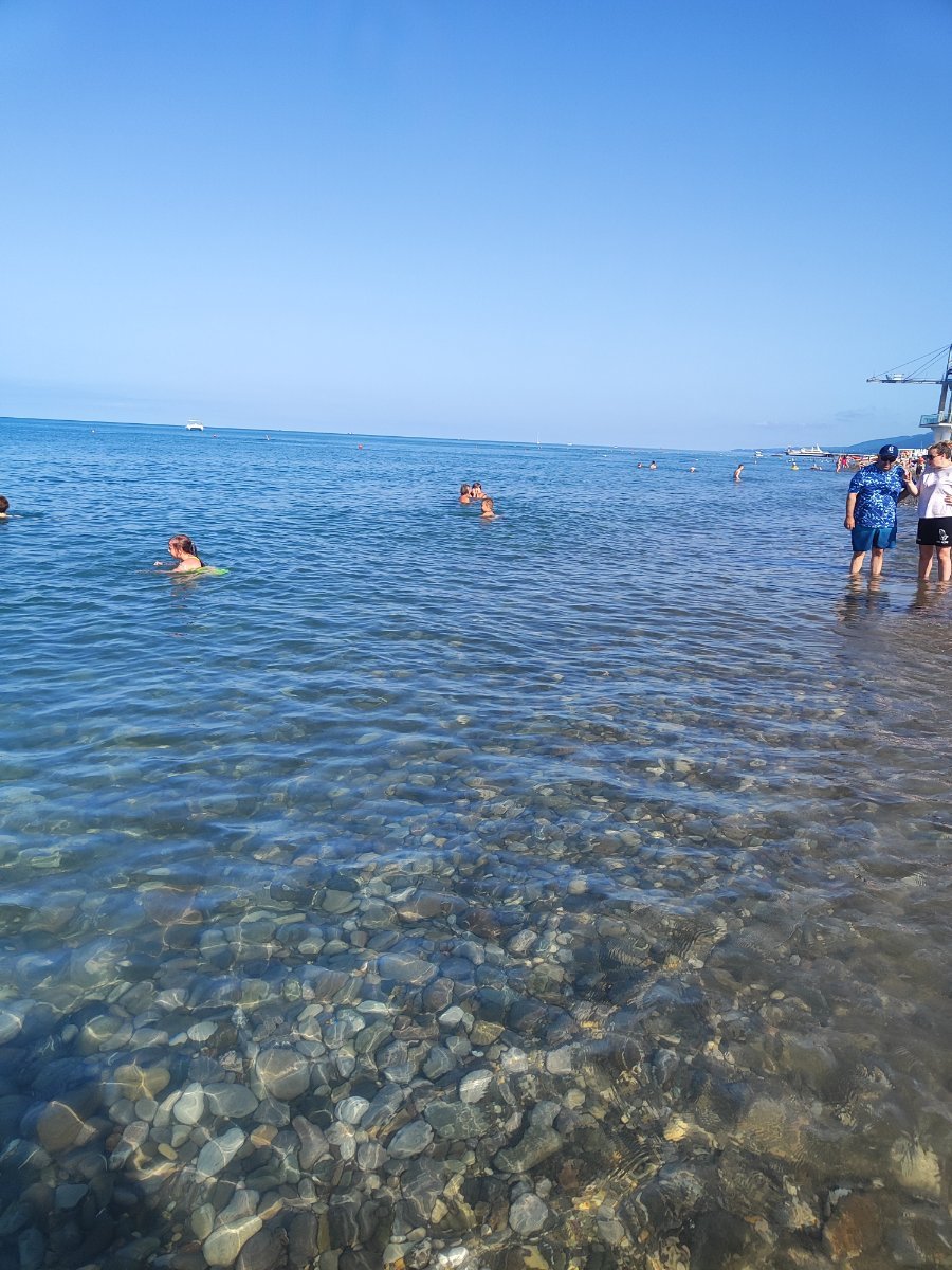 Вопреки нашим переживаниям в связи со вчерашним снижением температуры воды море тёплое. Мы на новом месте, поэтому информер пока не нашла, по ощущениям у берега градуса 23. Дальше вообще теплынь :good: