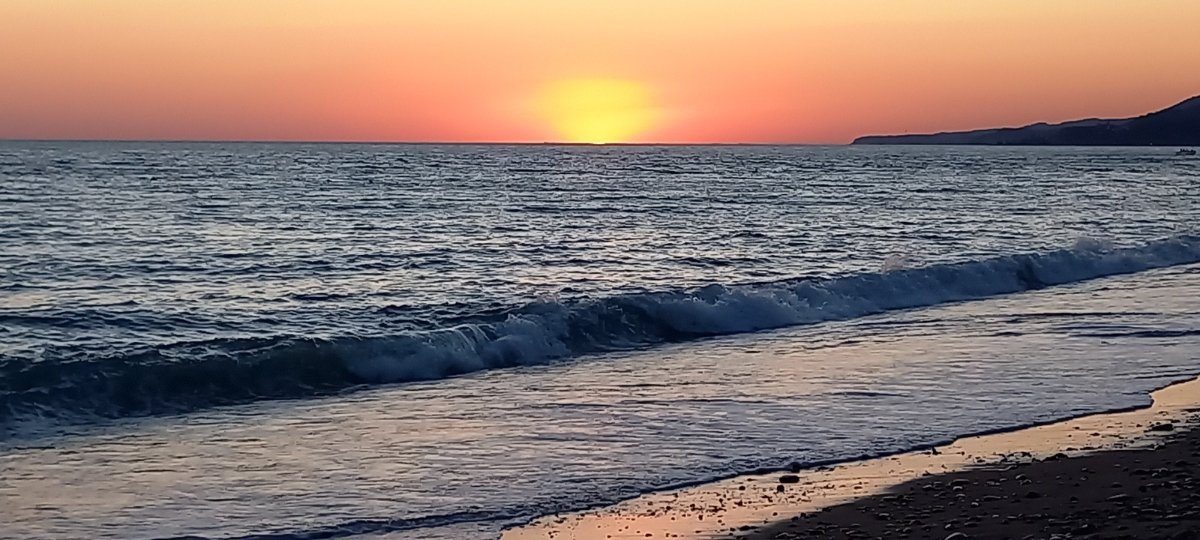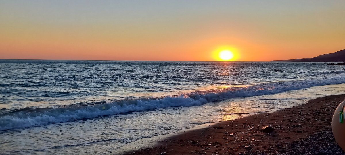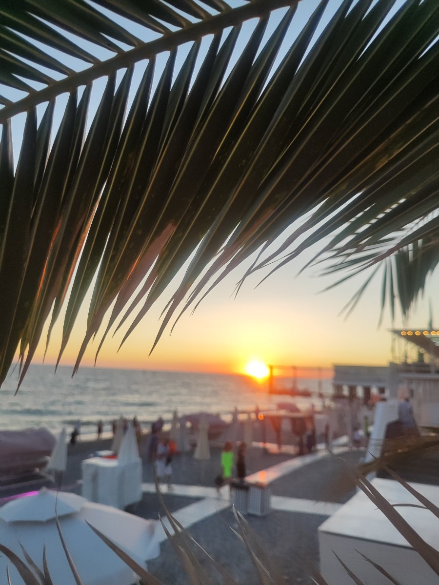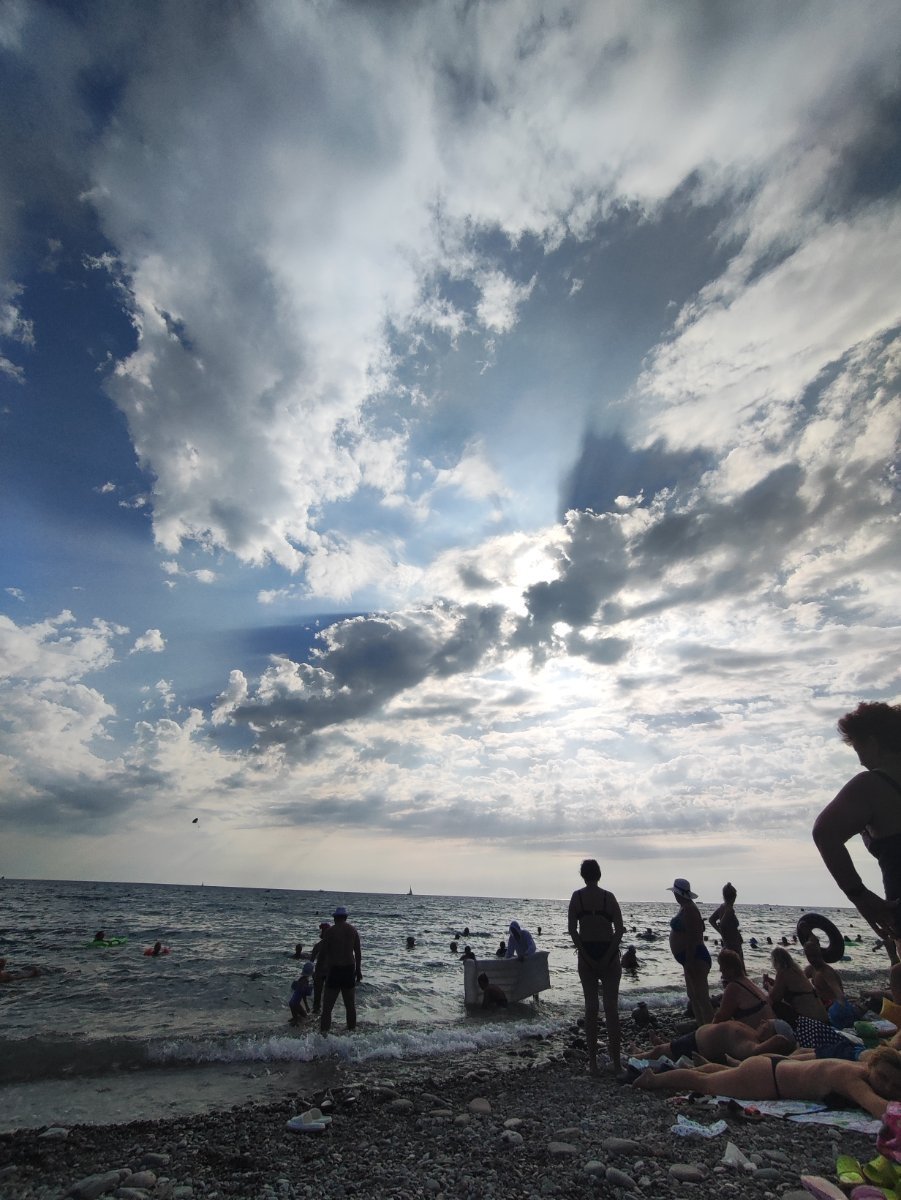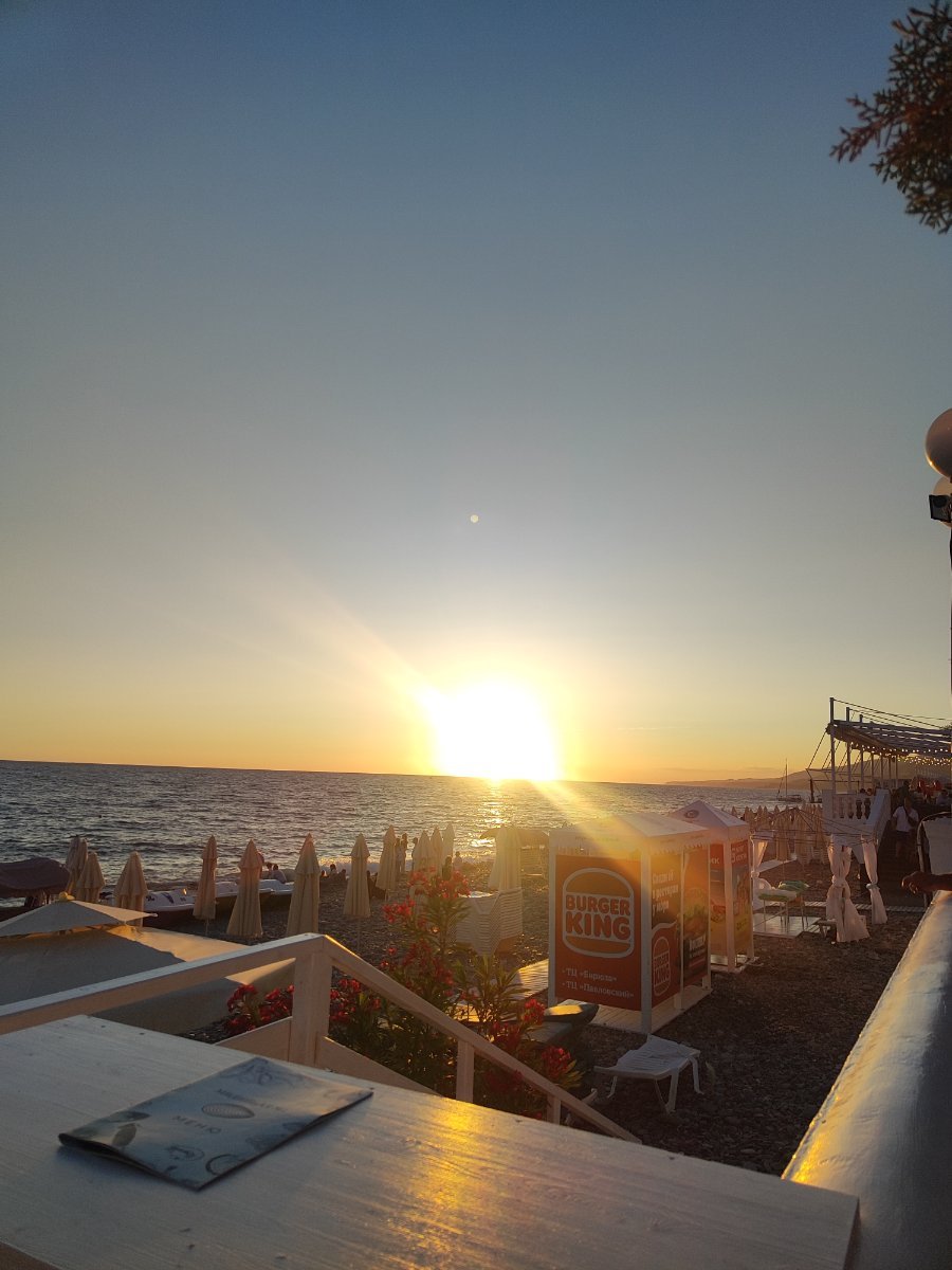 Сегодня впервые за 3 года встретили заход солнца на пляже. Обычно как-то не успевали: наблюдали то с балкона ГД, то мимоходом по пути на пляж или во время прогулки по набережной, а там слишком шумно и суетно, и от этого не получалось полностью ощутить всю красоту момента.