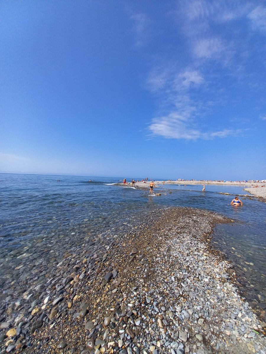 Море теплое, легкие волны еле плещутся, накупалась от души, сразу сошла вся усталость (ну или почти вся😁). По дороге с моря стал накрапывать дождик, но когда дошла до гостиницы, он уже прекратился.
