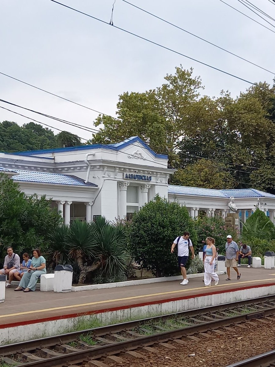 Я проснулась в 5-30, но не от дождя, его как раз не слышно было при закрытых окнах. У нас по плану прогулка в Адлер. И хорошо, что запланировали на сегодня- не жарко, солнышко почти не выглядывает. Поэтому спокойно обошли все олимпийские объекты, сгоняли в Океанариум. Зашли на Адлерский рынок, закупались вкусняшками и топаем на ж/д вокзал.