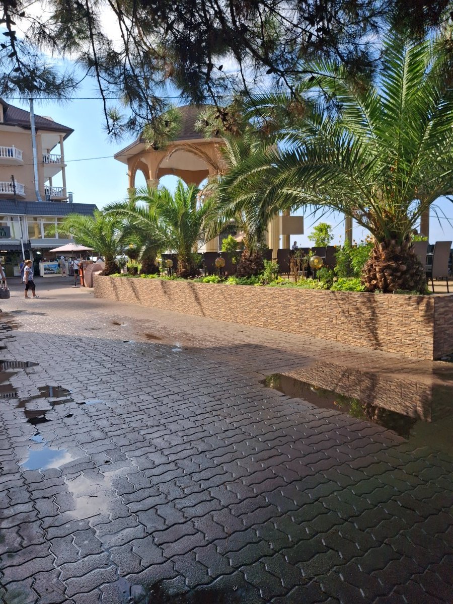 Рано утром ливанул дождь, лужи были знатные, но сейчас все уже высохло..