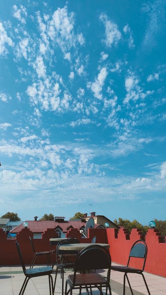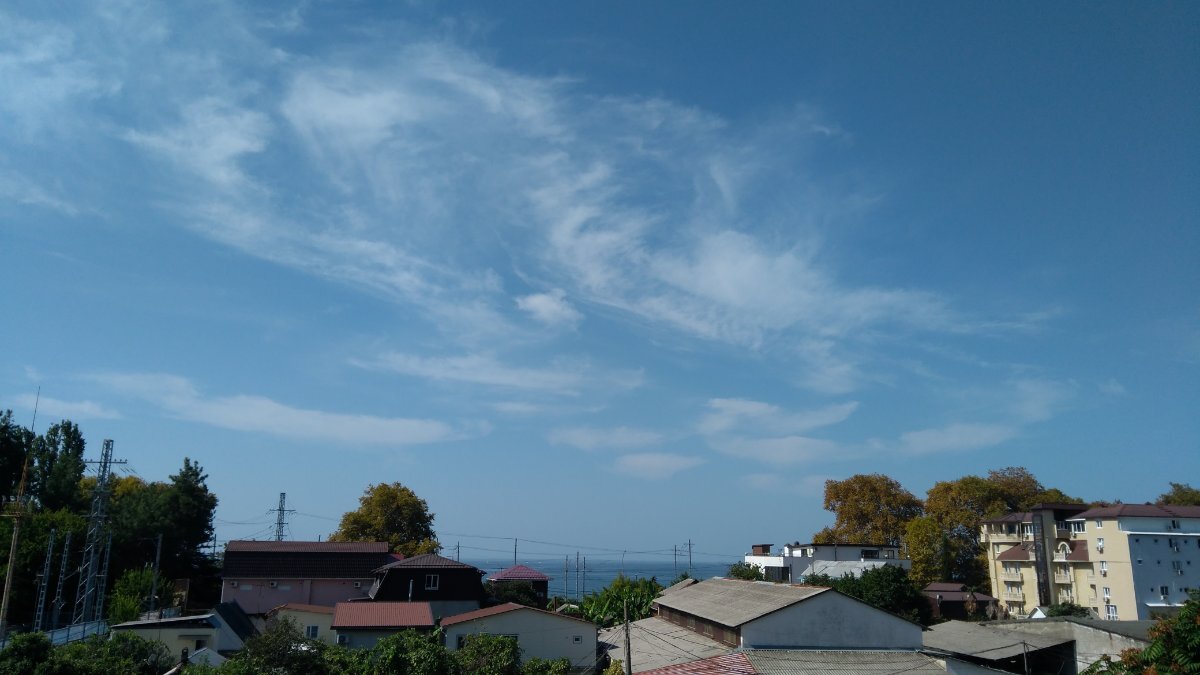 Сегодня небо периодически в тучках и, хоть и жарко, небольшой ветерок приятно обдувает