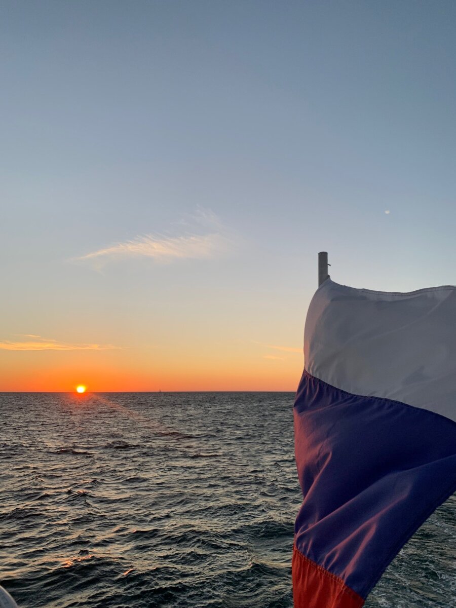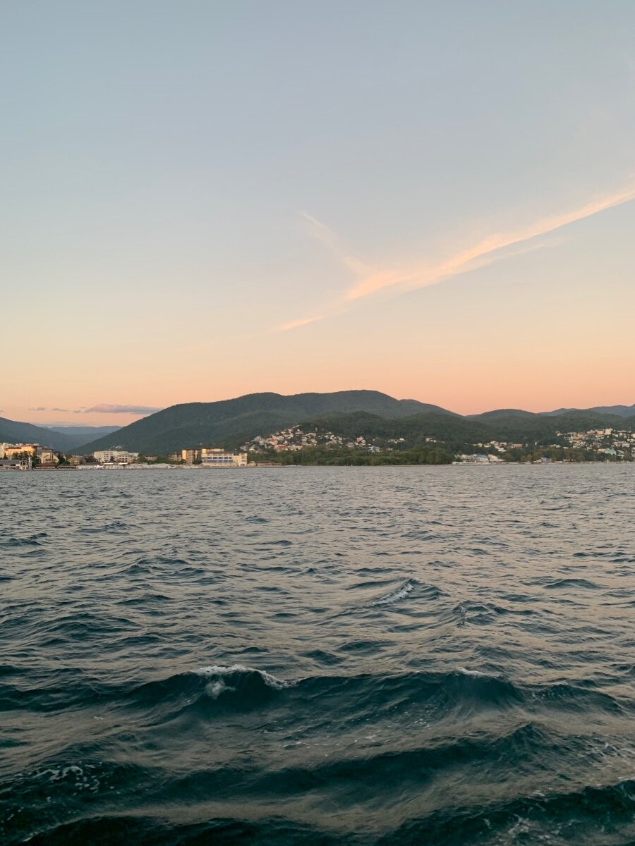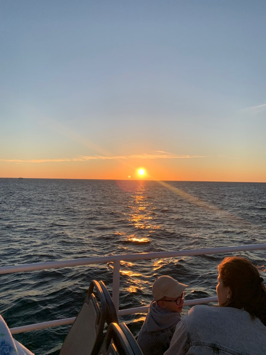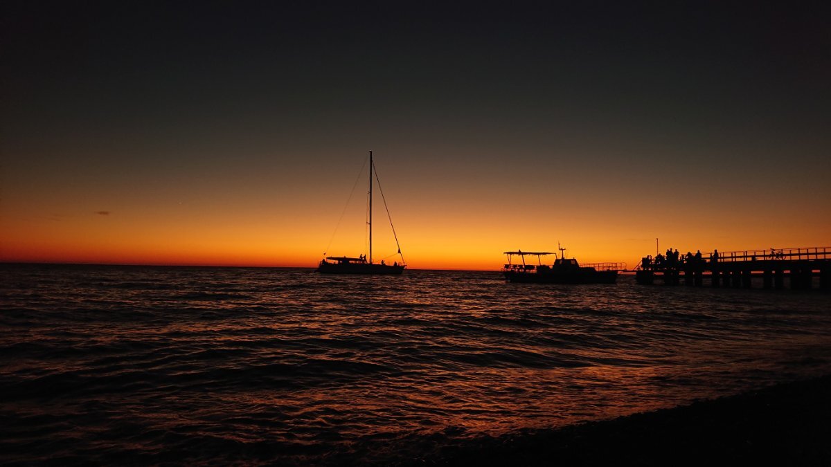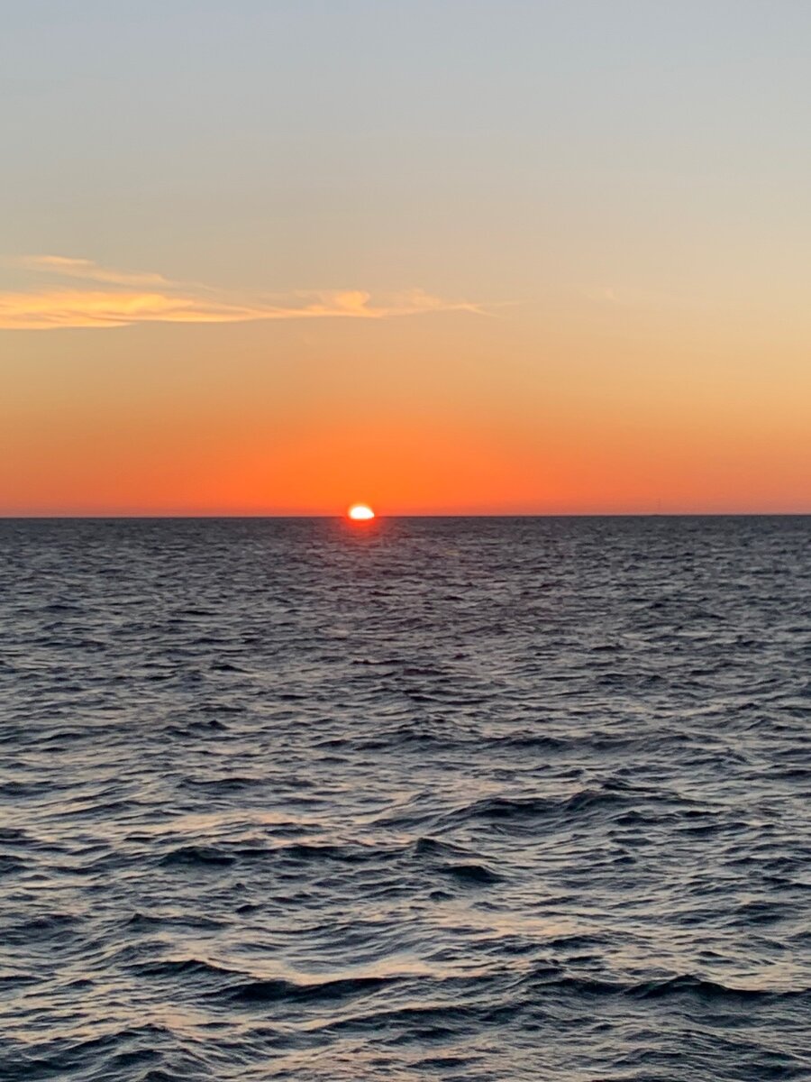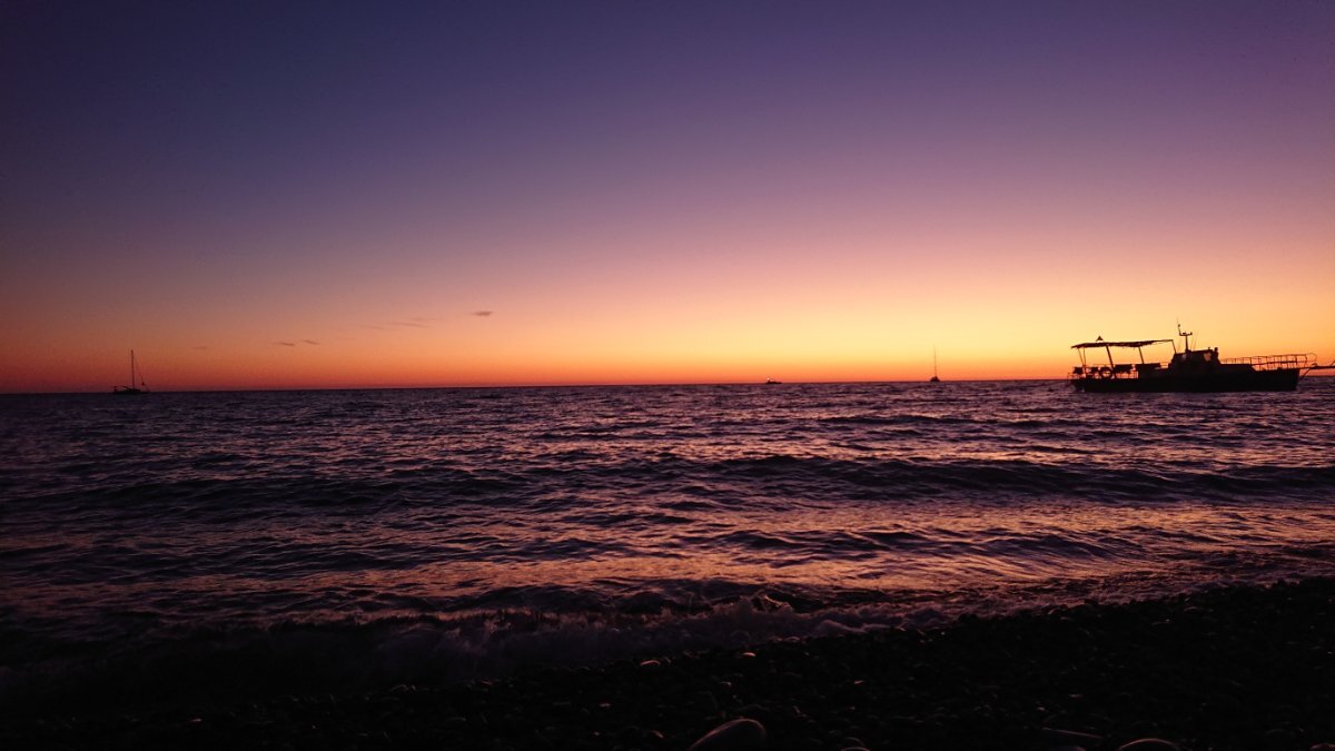 Сегодня особенно художественный закат. Будто кистью размазанные по небу то медовые, то розовые облака. Любовалась, по плыла. (Ура, встречных медуз не было).