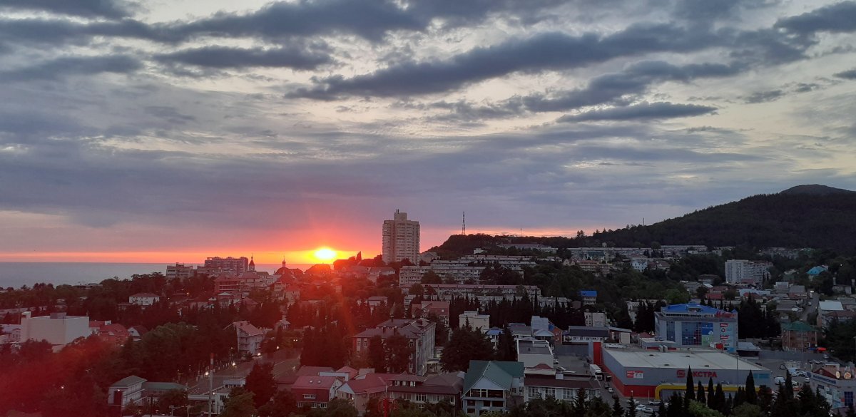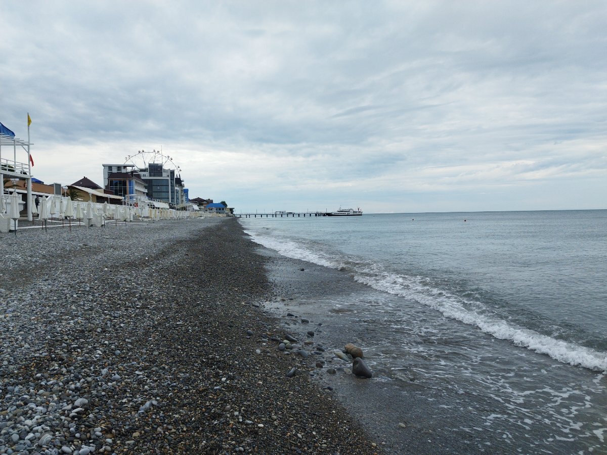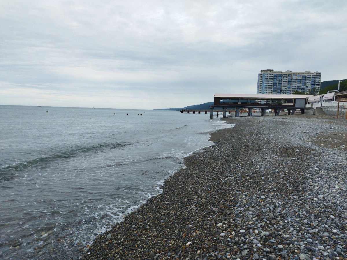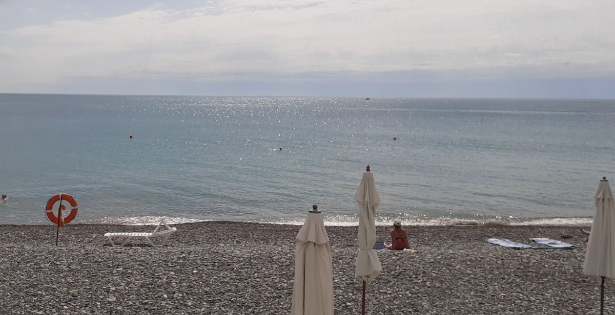Доброе утро, сегодня пасмурно, в 7 утра немножко покапал маленький дождик, тепло, море почти спокойное, водичка по словам мужа хорошая.
