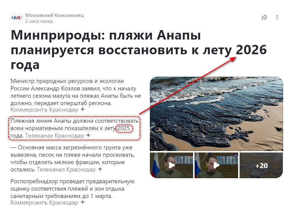 Оптимистка Опубликовано 17 декабря, 2024 Автор Опубликовано 17 декабря, 2024 Купальный сезон на пляжах Анапы в ближайшие два года под угрозой срыва. Берега загрязнены мазутом. Нефтепродукт вытек из разрубленных волнами танкеров. По предварительным данным, в воду попало 9 тысяч тонн вещества после морской катастрофы. Местная флора гибнет. Птицы, покрытые чёрной жидкостью, умирают на загрязнённом песке. В опасности калкан, камбала и морская живность. 300 человек уже занимаются устранением последствий утечки. Мазут собирают всеми возможным способами, в том числе руками. Единственный рабочий метод очищения пляжа — химические вещества. Течение и ветры Краснодарского края продолжают распространять мазут. Больше всего пострадал пляж Витязево. Остатки могут дойти до Сочи и Дагомыса. Решается вопрос о введении ЧП федерального масштаба. По нашим данным, последний раз такое случалось в 90-х годах. Тогда на ликвидацию последствий ушло 10 лет. Убирали нефтепродукты даже дети. По данным из открытых источников в Интернете 3 1 1 12 "Если море тебя печалит, ты безнадёжен" Федерико Гарсиа Лорка