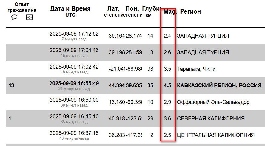 Оптимистка Опубликовано 7 июля, 2024 Опубликовано 7 июля, 2024 Землетрясение в Сочи: что известно к этому часу Сегодня в 8:09 на территории Лазаревского района немного трясло. Данные предоставлены Обнинской обсерваторией: — Магнитуда: 3.6 — Точная локация: 43°43'48''с.ш., 39°27'00''в.д. — В 27 км от Центра Сочи и в восьми километрах от Вардане — Глубина: 5 км — Точное время: 8:09:48 — Эпицентр в 27 км от центра Сочи, гипоцентр в 27,5 км от центра Сочи Ожидаем комментарий ГУ МЧС по краю. 6 3 4 "Если море тебя печалит, ты безнадёжен" Федерико Гарсиа Лорка