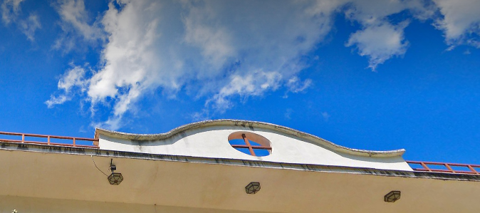 обычно народ так высокого головы не задирает, когда гуляет :)) окошко сквозное? там небо просвечивает?