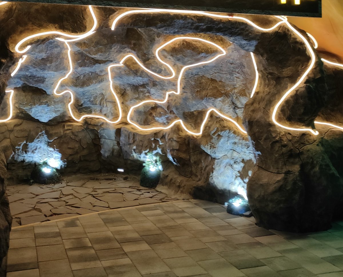 Может быть, там тоже динозаврики на камушка стоят ) блин, и в Пингвинарий вход пингвины на камушках... а в каком-то океанариуме,забыла название, тоже вход как из камней, а сверху змея большая шипучая))))