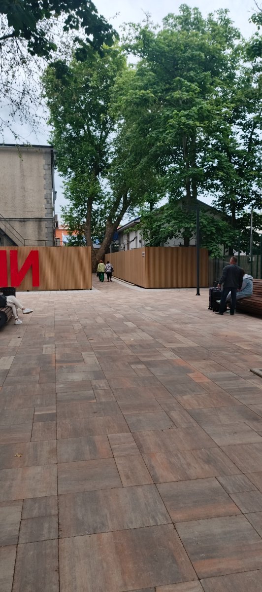 Обновили сквер у вокзала. Теперь на пункт досмотра можно пройти напрямую от перехода.
