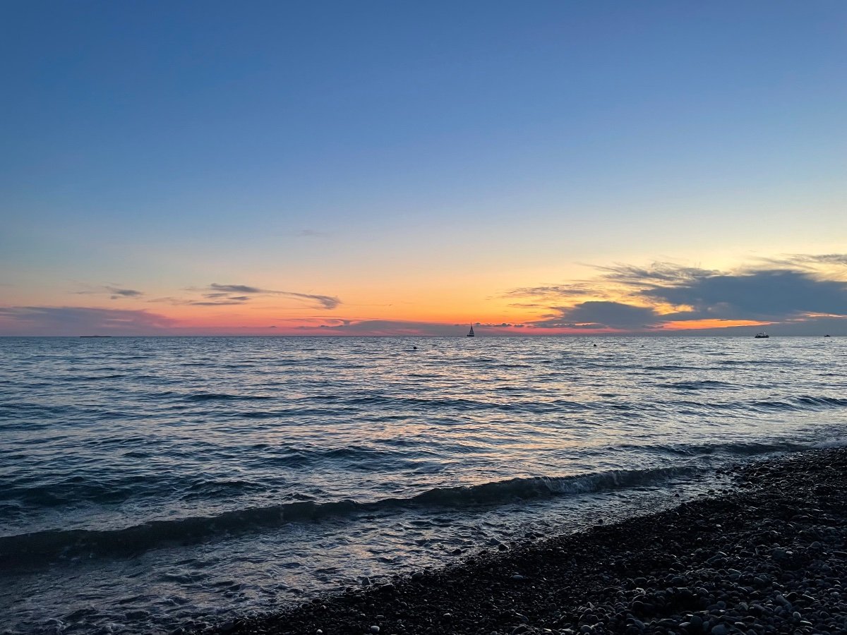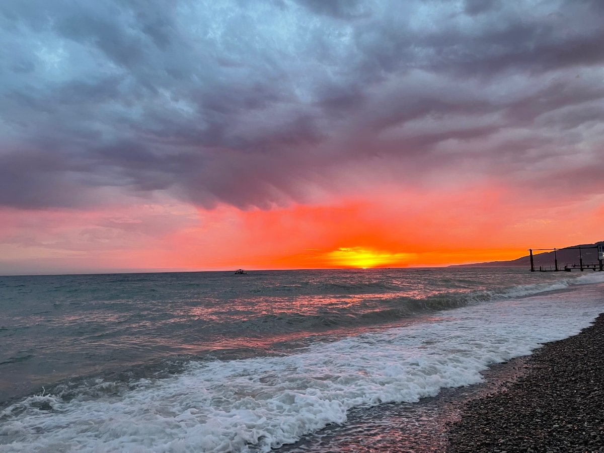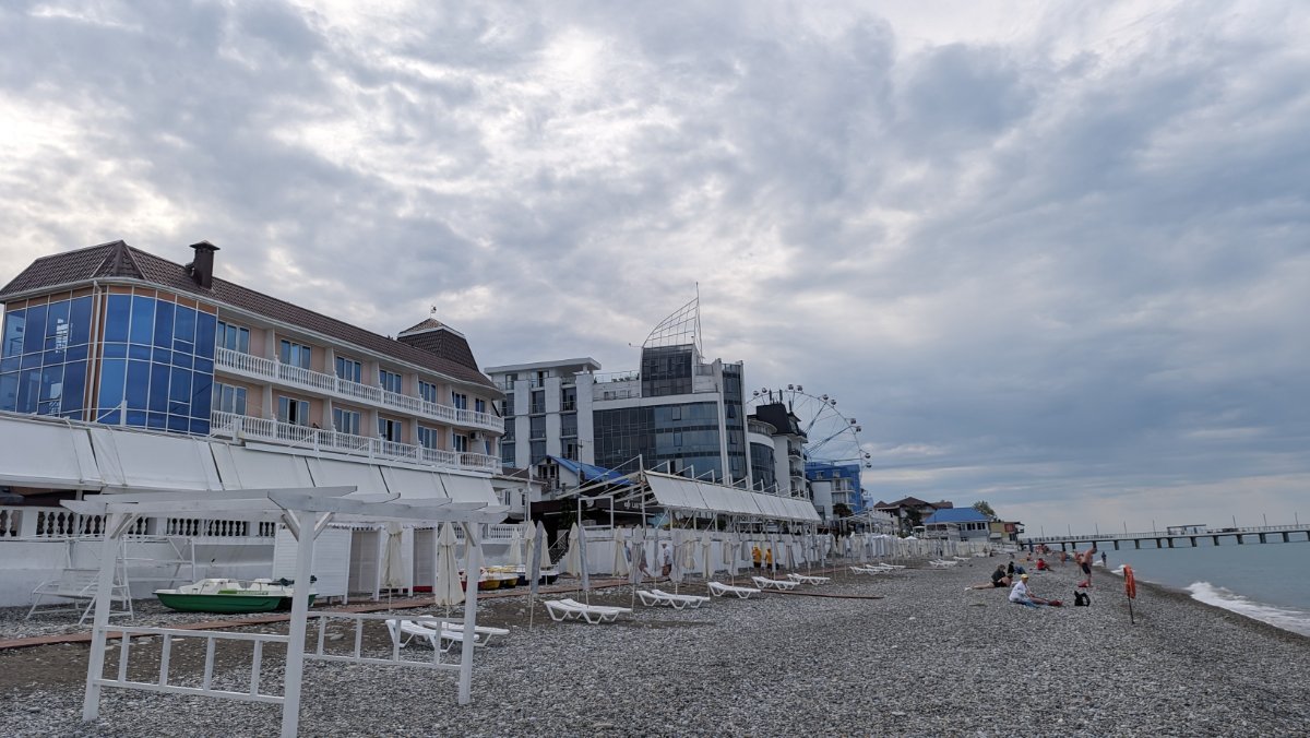 Сегодня погода комфортная, на солнце жарко, но ветерок прохладный, вообще погода меняется так быстро, то облака все небо закрыли, проходит 10 минут и опять солнышко светит. Мы сегодня на берегу, в парк не пошли, сегодня там шумно, праздник для детишек. Пообедали в Арман и пришли в номер. На море волны небольшие, люди загорают, купаются. Отдых продолжается.