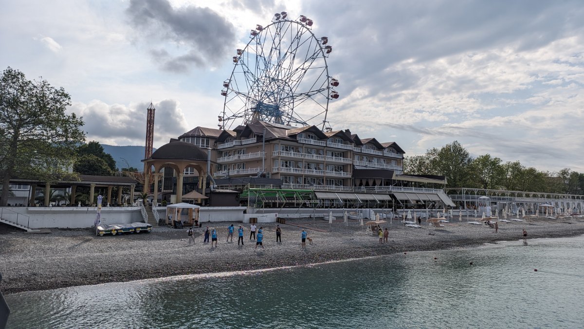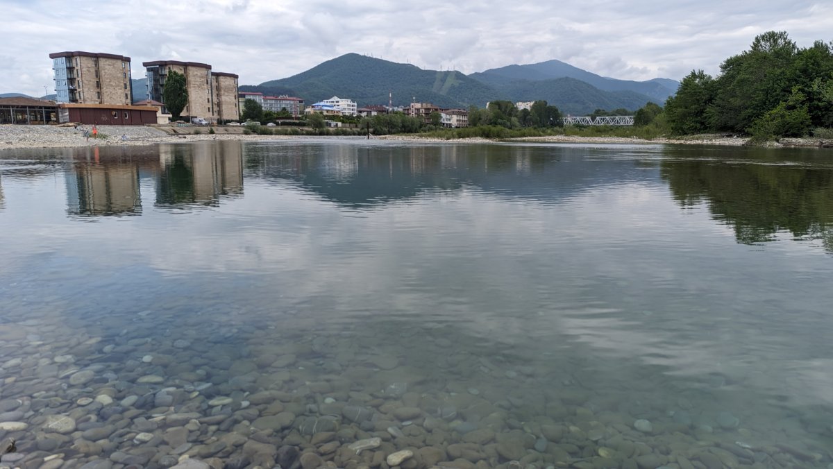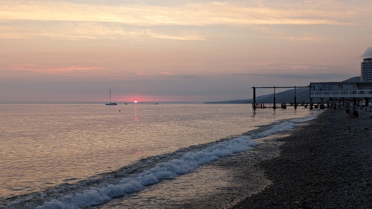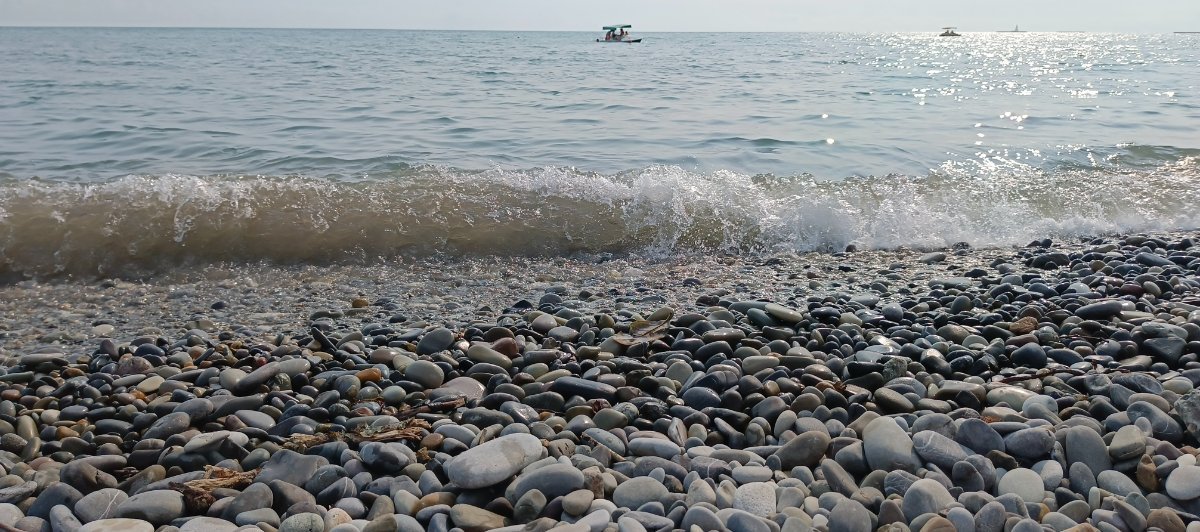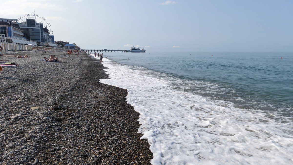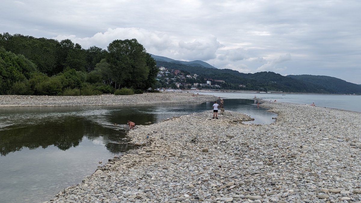 Сегодня опять облачно. Погода для нас комфортная, не холодно и не жарко. На улицах прибавилось отдыхающих. На дорогах - машин. А вот на пляжах - красота, "упасть" можно где хочешь, но лучше, конечно, рядом с @Nadik:ag:. Развлекухи ещё не работают практически, ни тебе парашютов, ни тебе бананов. Плыви хоть в Турцию))). Правда, температура воды это вряд ли позволит (((. Поэтому гуляем по Лазаревскому.