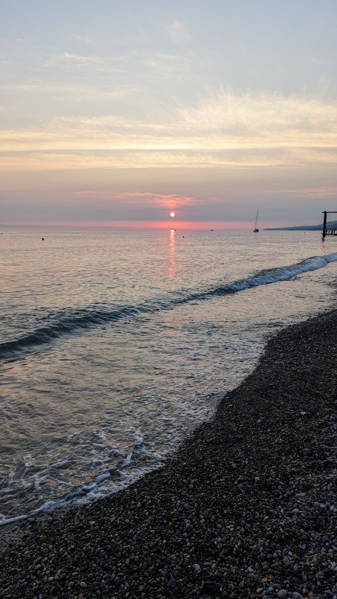 Солнце на закате долго не выходило из облаков, когда вышло было обалденно красного цвета. Но видно это было только невооружённым глазом, фото абсолютно этого не передаёт, почему-то.