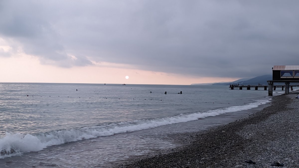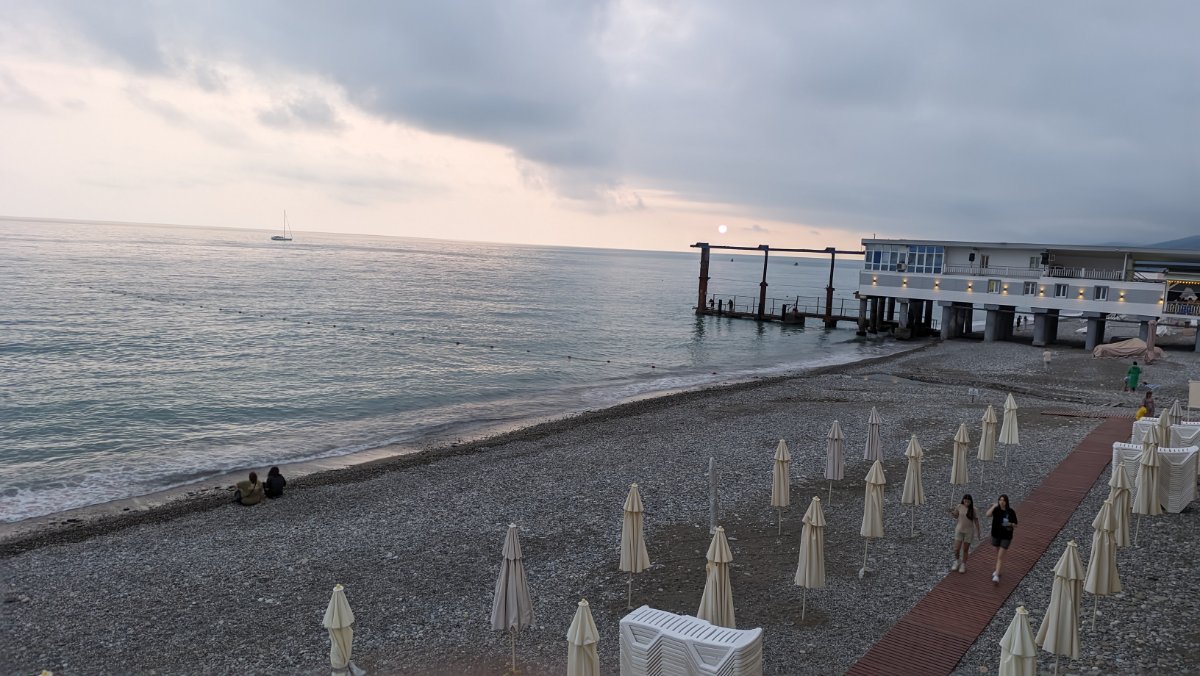 Пасмурно, дождик пытался капать. Я сегодня в центре, народу на пляже мало