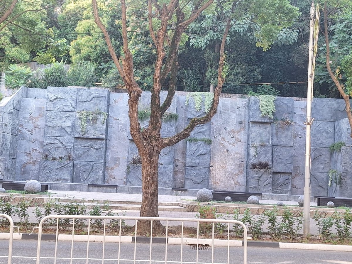 Да он что работающий, что не работающий - друг от друга не отличается. Струится по стене тонкая струйка, сразу и не видно даже в натуре, а уж на фото вообще не заметно.