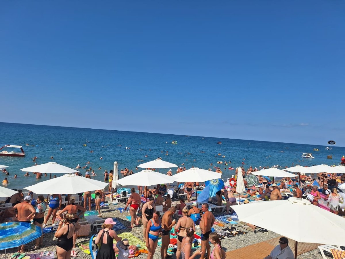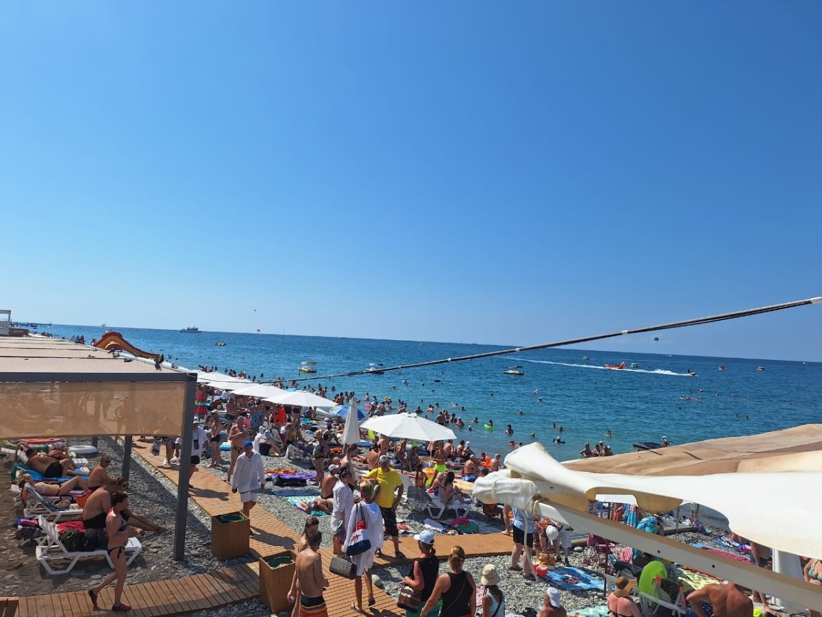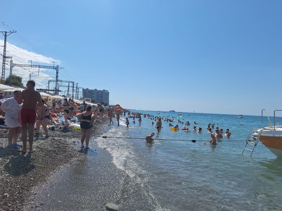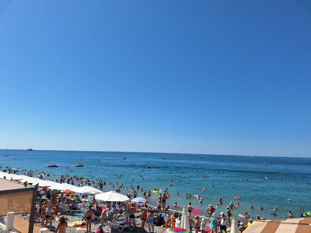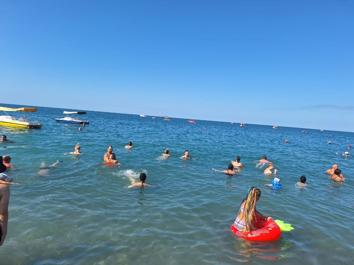 Тут столько "большого" народа, что море из берегов выходит. А море сегодня может быть тёплым, а может холодным - раз на раз не приходится. Нам то тёплое море, то прохладное - не угадаешь.