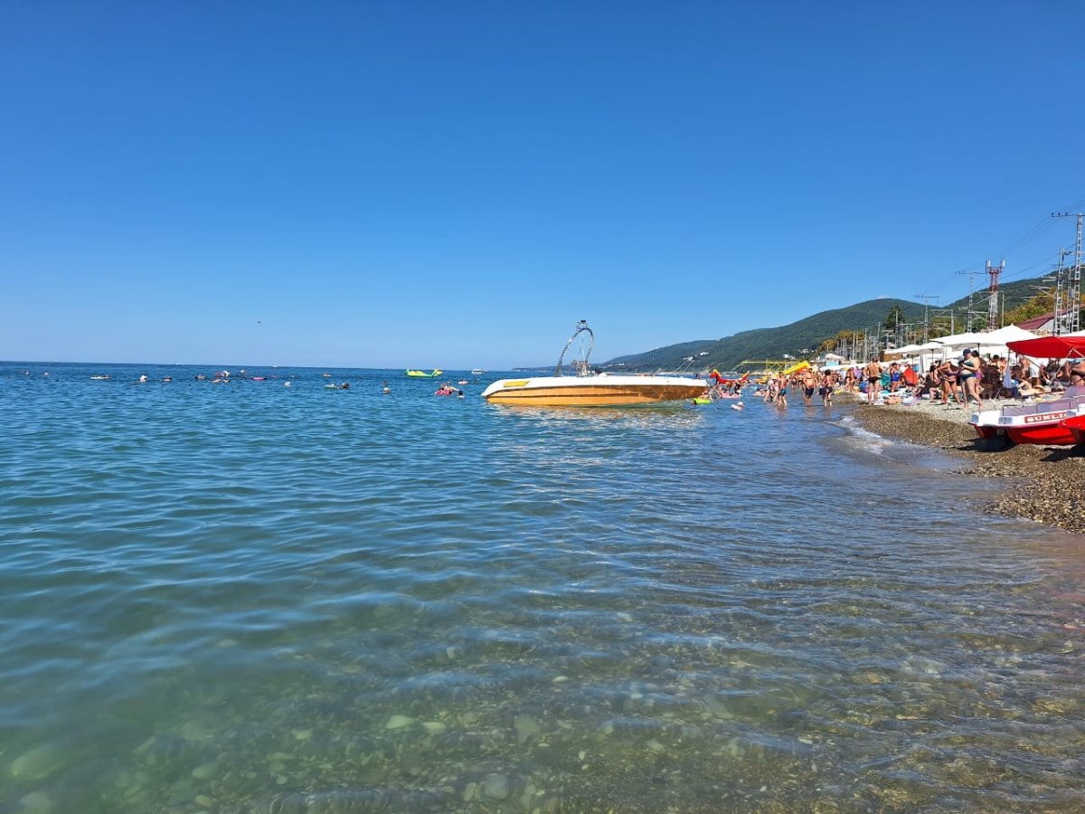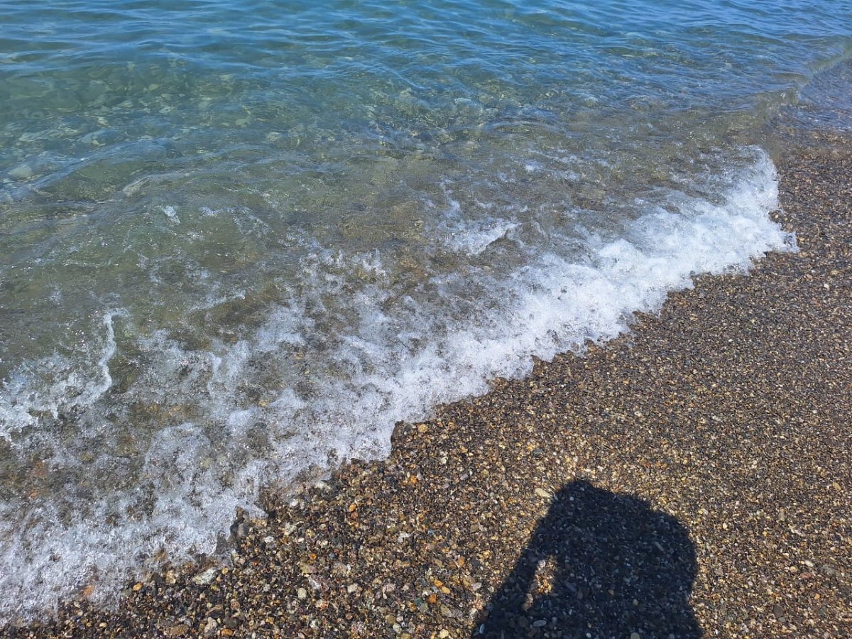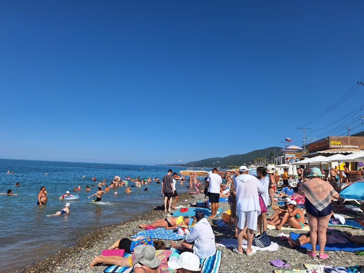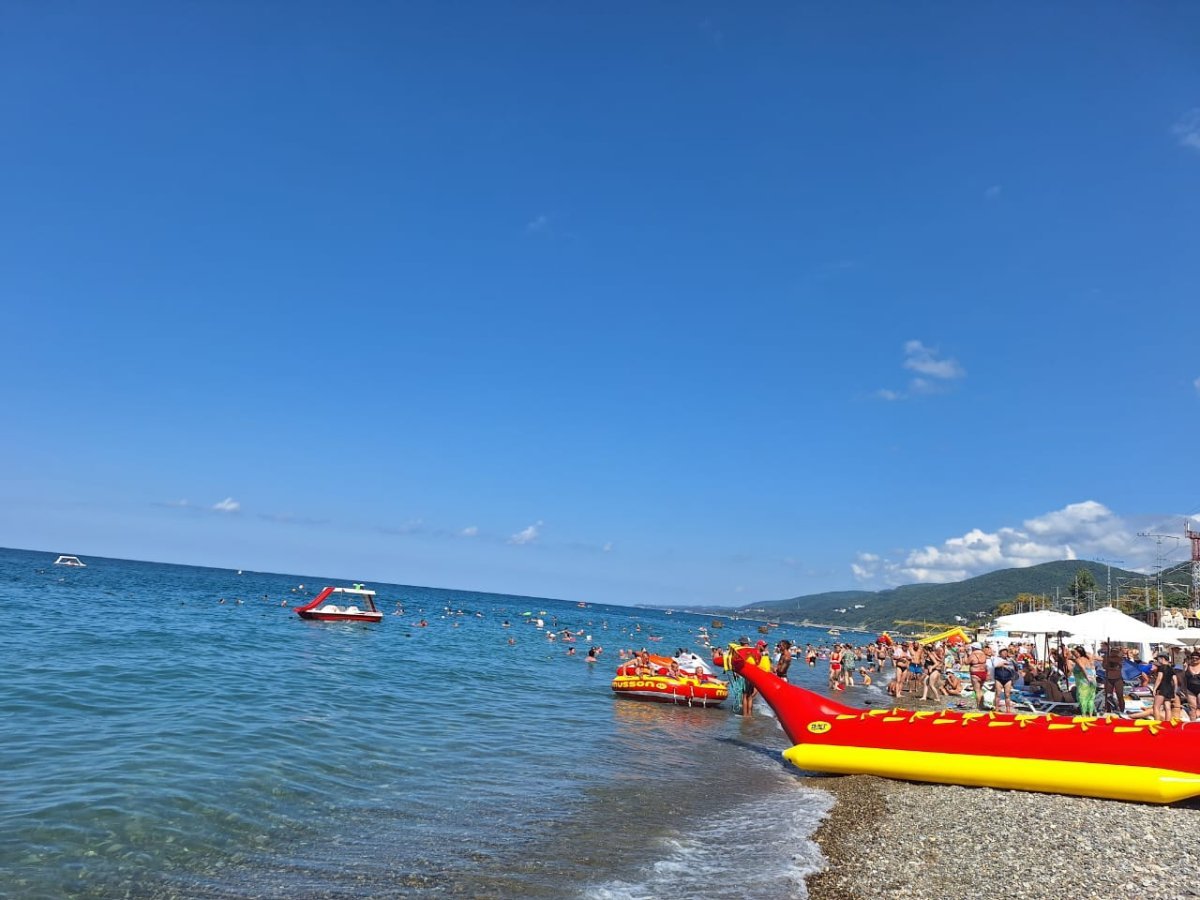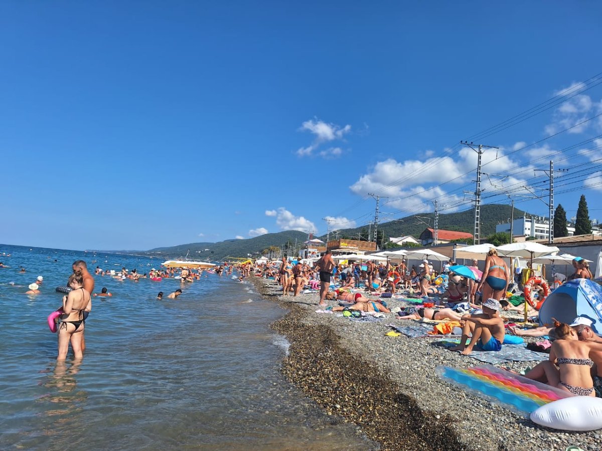 Тут столько "большого" народа, что море из берегов выходит. А море сегодня может быть тёплым, а может холодным - раз на раз не приходится. Нам то тёплое море, то прохладное - не угадаешь.