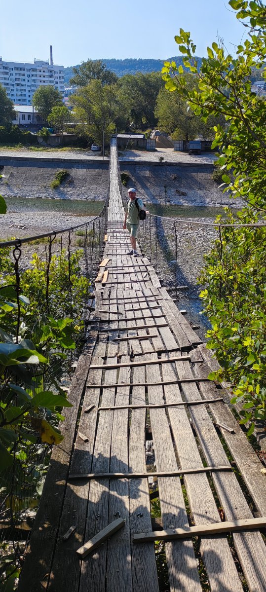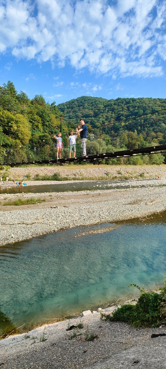 В день приезда ходили к подвесному мосту, я не решилась по нему пройтись, в этот вечер и увидели, что народ на речке купается. Поужинали в Пронто (очень вкусный шашлык), кстати, мы очень быстро привыкли к влажному воздуху и уже вчера совсем не ощущали разницу.