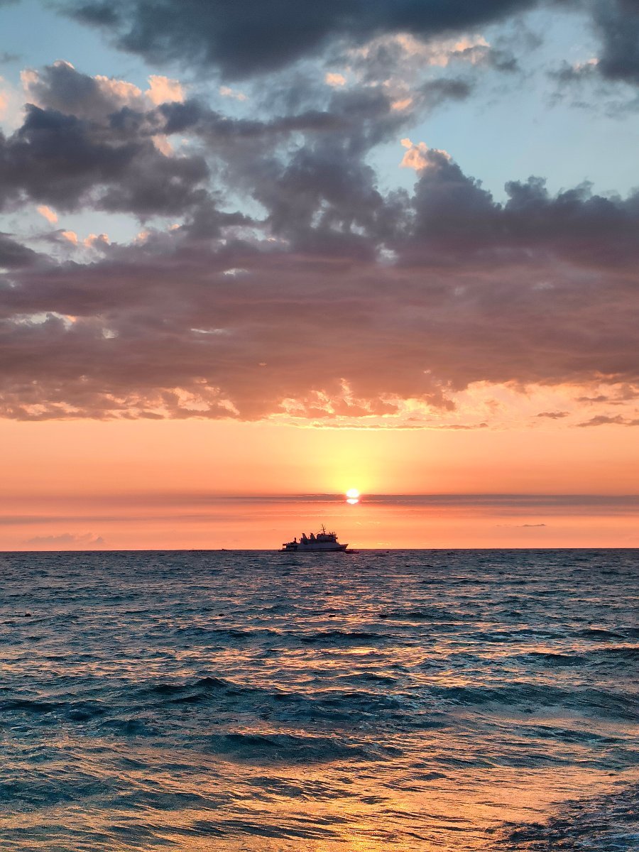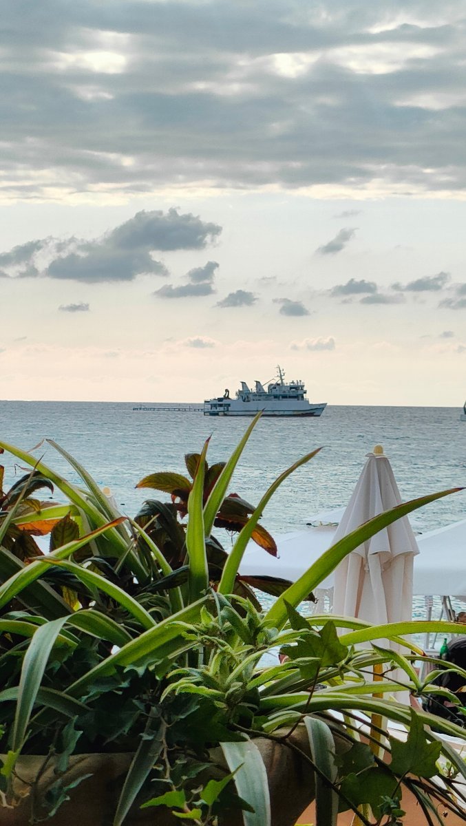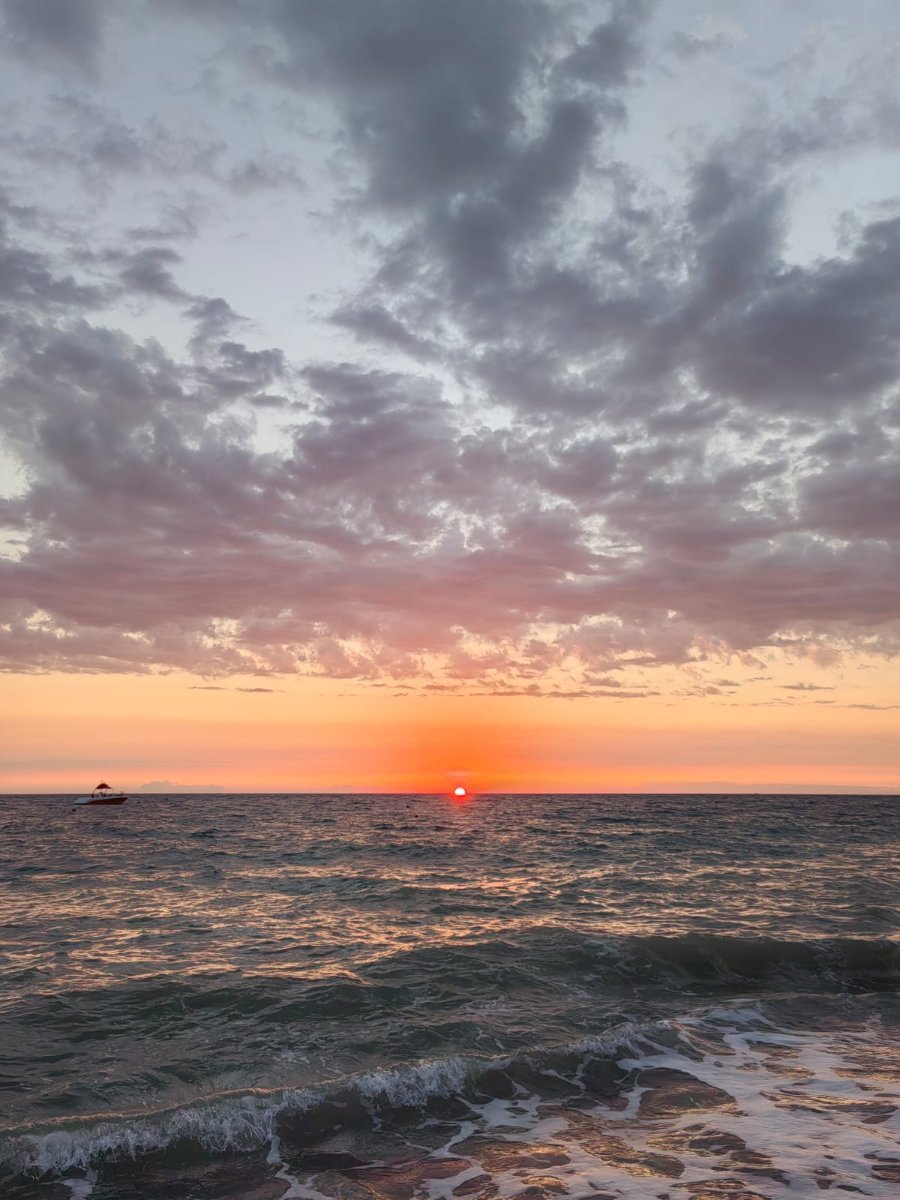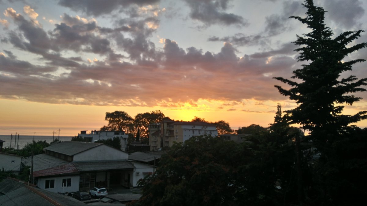 А вот и первый закат с нашего балкона.  В этом году немного расстроилась, с балконов нашего ГД исчезли цветы. Мы девятый раз в этой гостинице, и всегда было интересно ухаживать за цветочками, наблюдать, как они оживают от правильного полива и ухода... Ну, гостиницу мы не сменим, но часть шарма этого места утрачена.