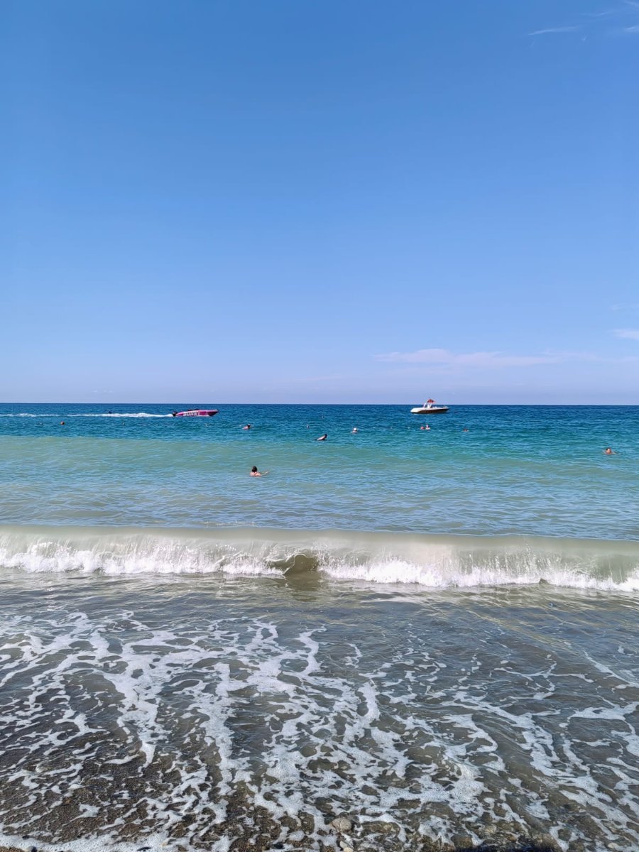 Сегодня купаться можно было только в первой половине дня, потом начались волны, но погода комфортная, солнечно, прохладный ветерок