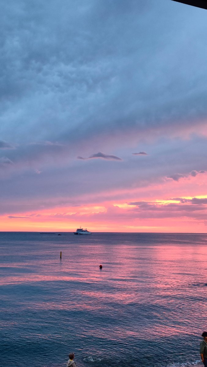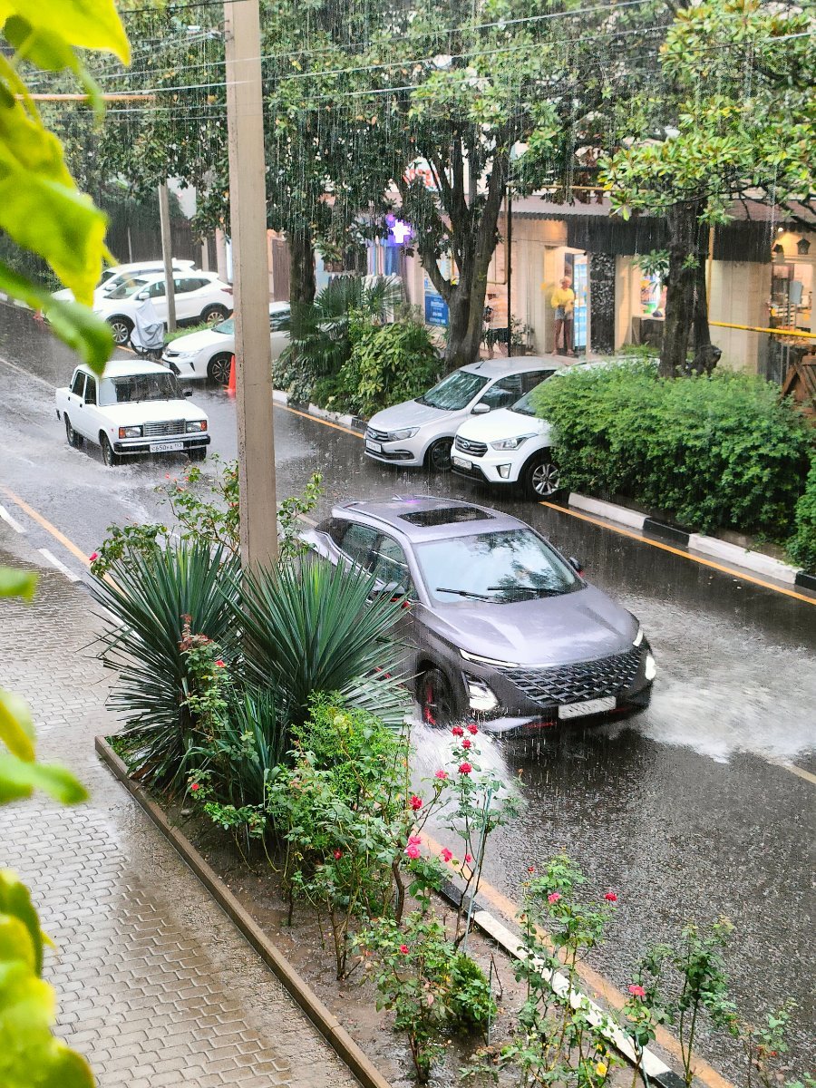 А я успела сходить на море! Сплавала до буйка, прогулялась по кромке. Дождь только начинал накрапывать, но далеко над морем сверкали молнии, гром раздавался. Отправилась домой, и уже у самой гостиницы дождь меня догнал.