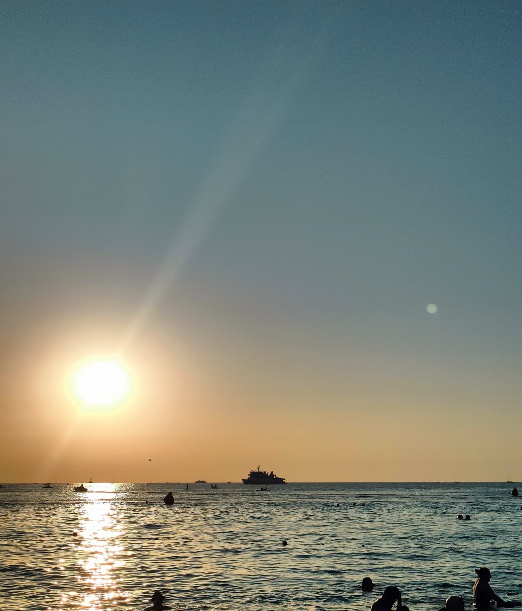 Сегодня, как впрочем , и в другие дни, теплое , спокойное море. Хотя сегодня оно прям как стекло, прозрачное, дно видно даже у буйков.