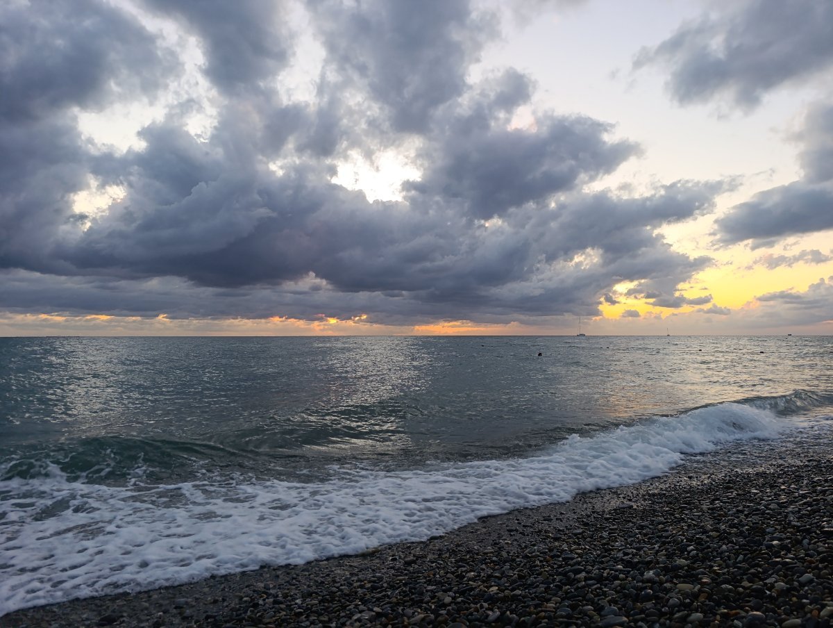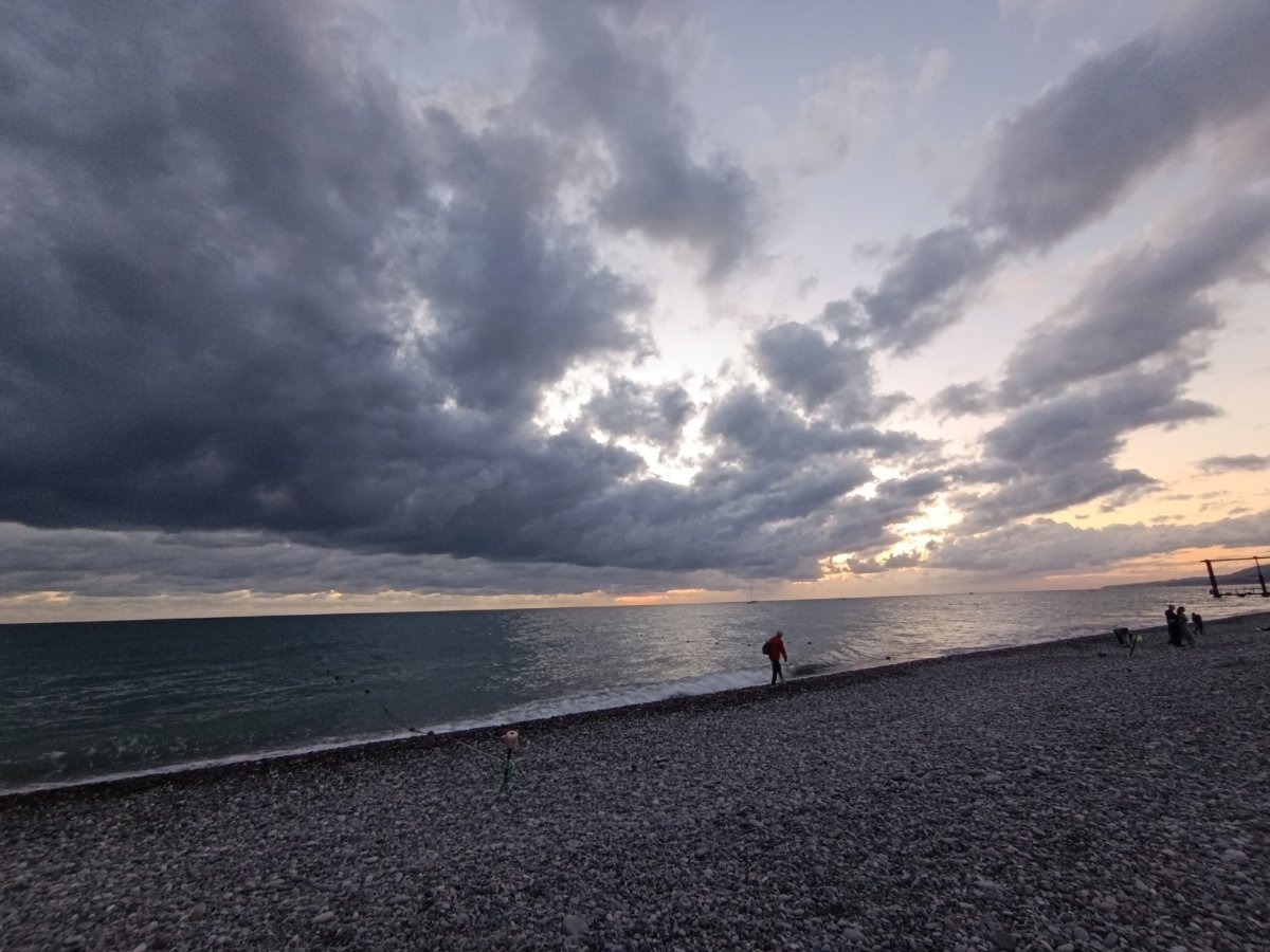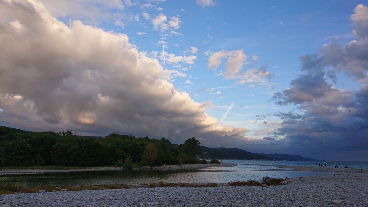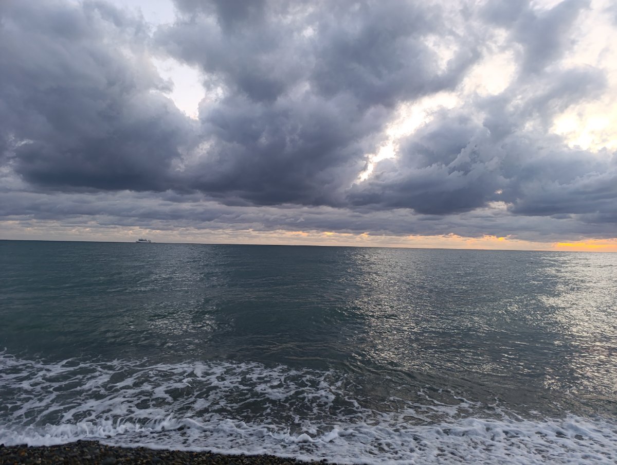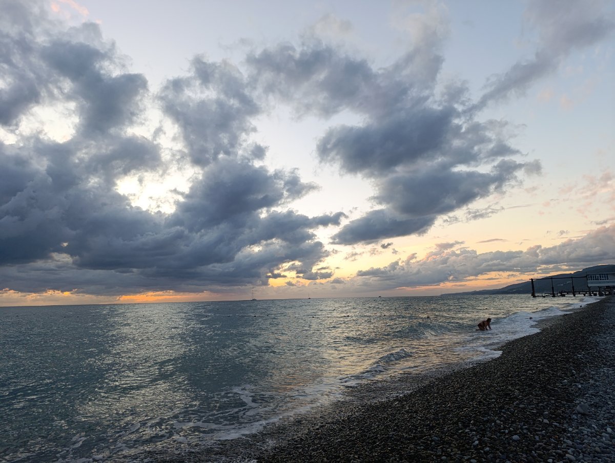 Сегодня день облачный, иногда солнышко выглядывает, мы съездили на рынок в Кавказские специи, купили молочный улун и кое какие специи докупила, потом пошли в парк посидели,  муж решил пройтись до речки по берегу, а я осталась в парке, но он не дошел, ветер холодный, продувает сильно. Так что пошли по набережной к ГД, солнышко вышло и муж решил все таки поплавать, я не рискнула.