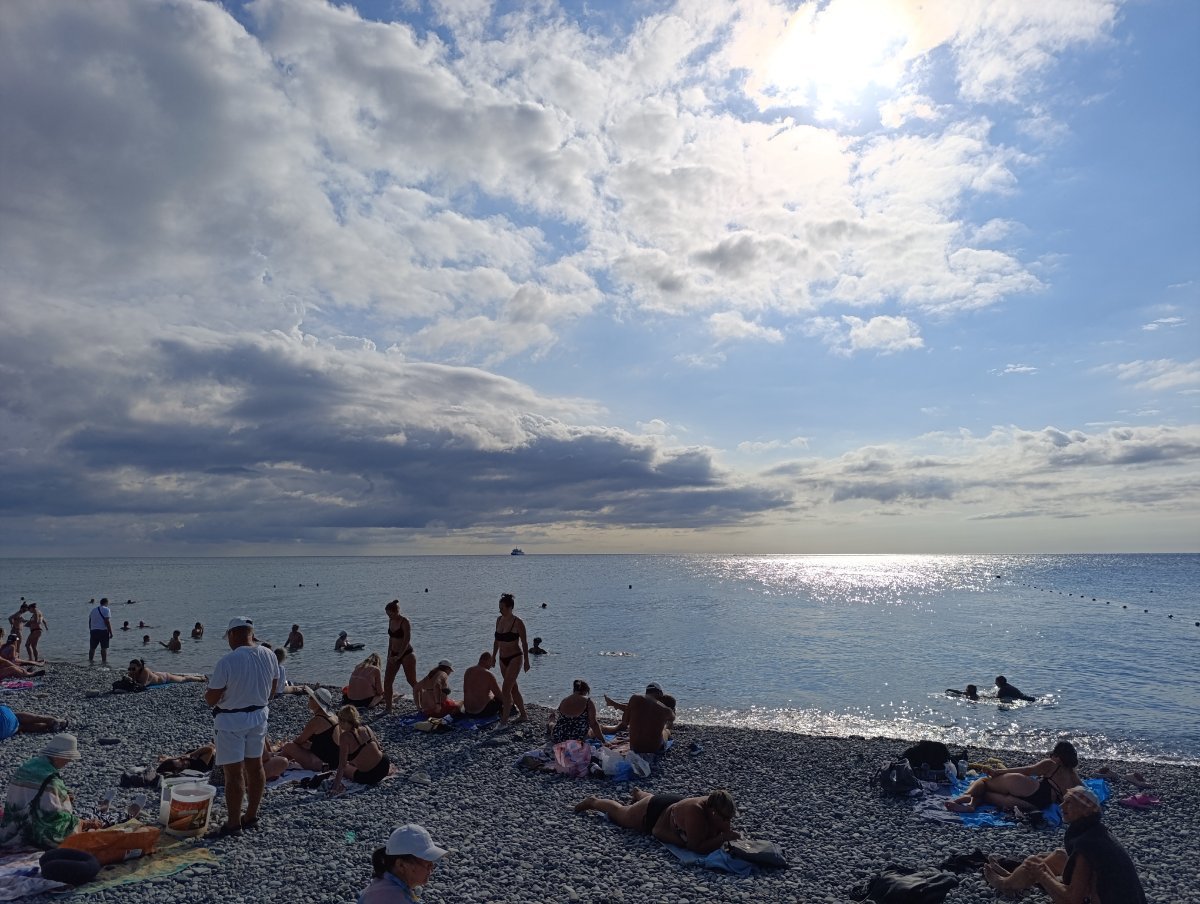 Утром было пасмурно и прохладно,  решили прогуляться, дойти до магазина Немецкая обувь на Победе, надо было мужу купить обувь, и потом - погодка разгулялась, появилось солнышко так что мы сегодня наплавались, море спокойное, прозрачное, заходить немного прохладно, но потом комфортно, ветерок холодный, побыли на море до 3 часов и пошли в номер отдыхать, сейчас опять солнышка не видно.