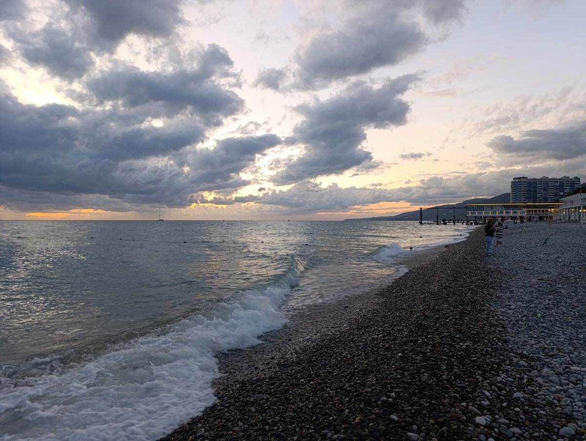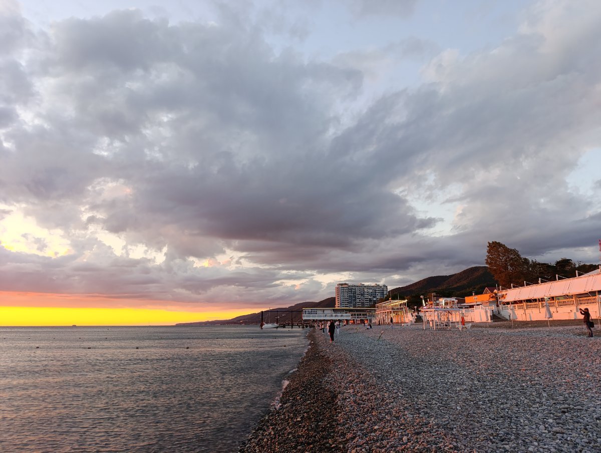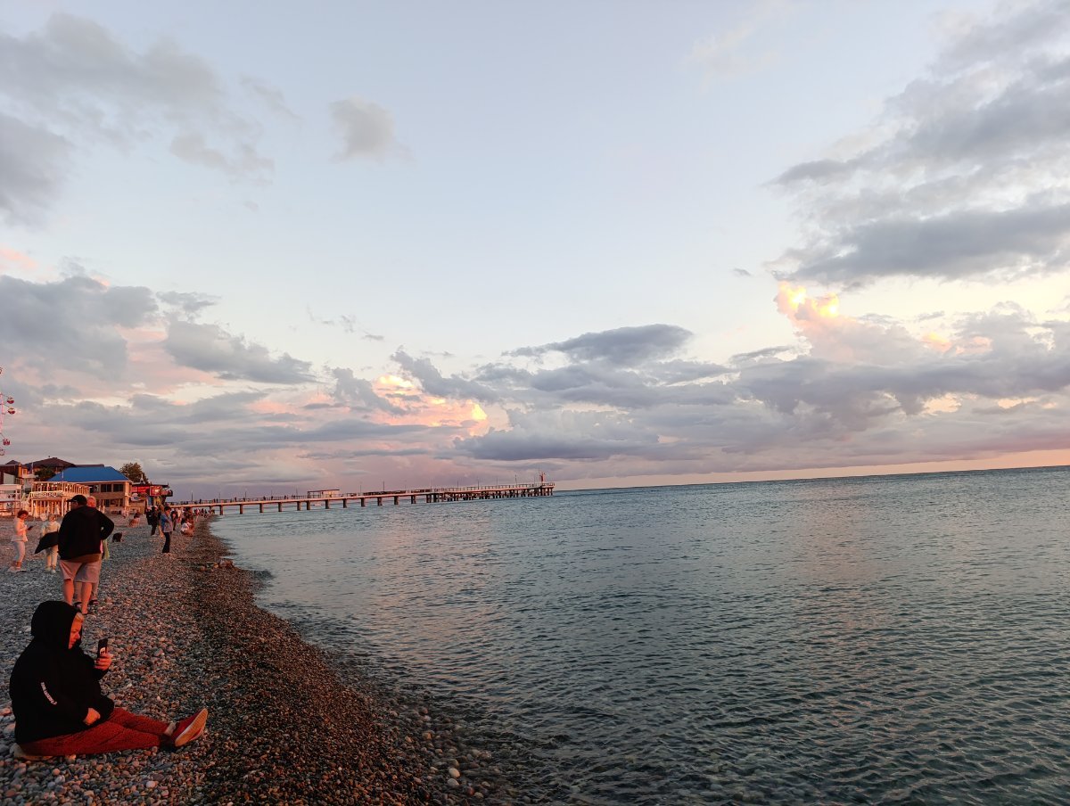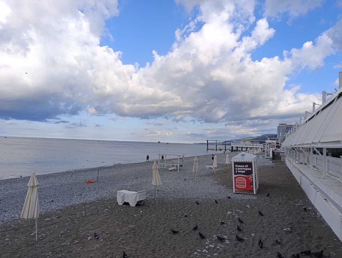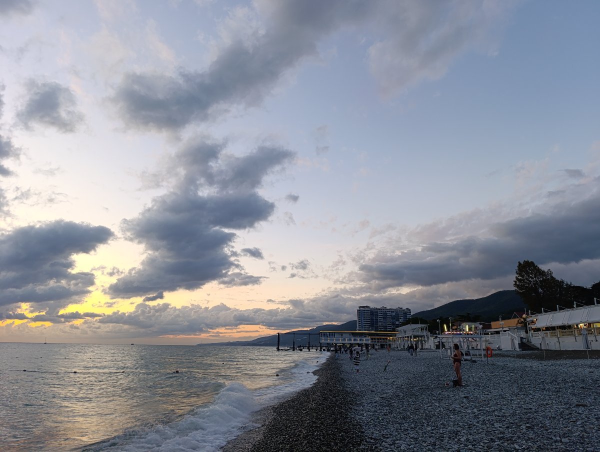 Решила вновь обретённую пляжную подругу по набережной прогулять. Второй раз в Лазаревское приезжает, а кроме нашего маленького западного пятачка ничего не видела. Бросили своих немощных половин (у неё тоже инсультник-колясочник), пошли от Свирского до центра. Где по пляжу, где по набережной. На удивление, людей ещё полнО. Догуляли до колеса обозрения и по Победы вернулись к себе. Не фотографировали почти, просто расслаблялись и глазели по сторонам. :dry: Хорошо!