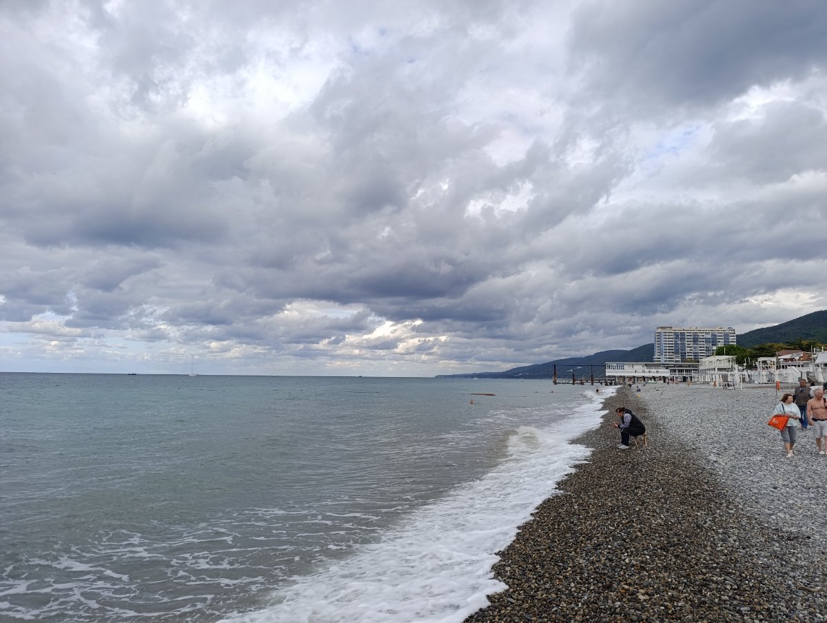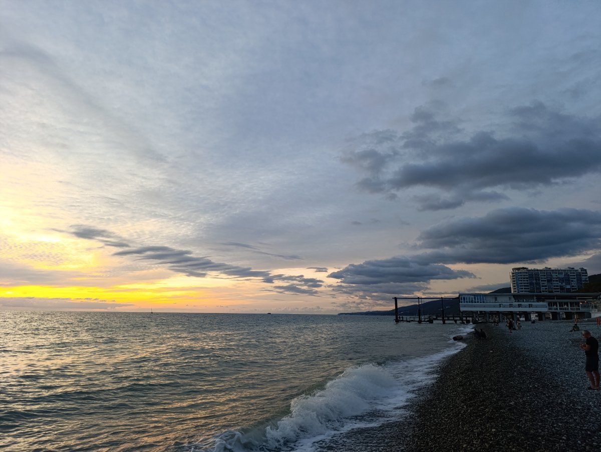 Сегодня холодно, дождь обещают на целый день, мы в номере, но муж хочет сходить на набережную поснимать, но до нашего отъезда обещают хорошую погоду, но море для меня тоже уже холодное, хотя вчера я все таки поплавала.