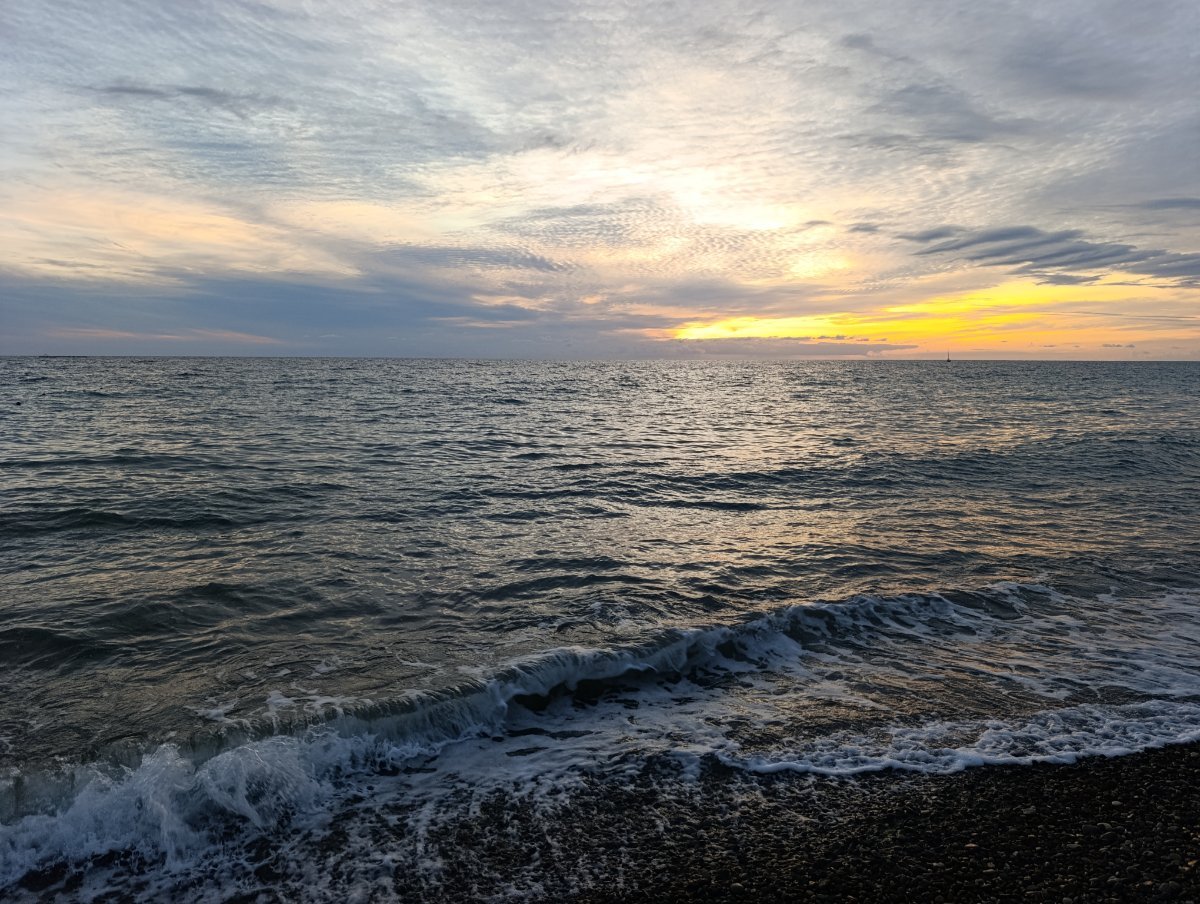 Нам ещё почти два дня, во вторник вечером уезжаем. Сегодня вечером отнесла ведёрко в раковарню и ещё прошлась по берегу от Дельфина до Бирюзы. Не плаваю второй день. Может, завтра рискну, если погода позволит. Всё же для меня море холодное, "чай не шешнадцать"...