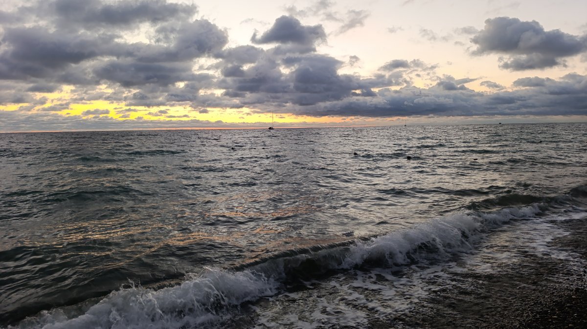 Полюбовалась последним в этом году закатом над морем. Чемоданы уложены (не чемоданы, конечно, большая дорожная сумка на колёсах и поменьше на ней, пара рюкзаков впридачу), аппаратура заряжена до упора. Осталось самим одеться. И через три часа скажем "до свидания,  милое Лазаревское". :br: