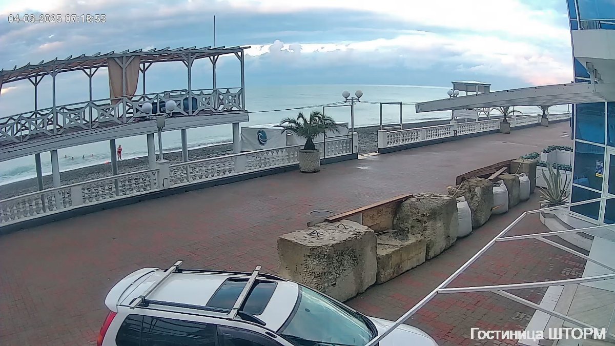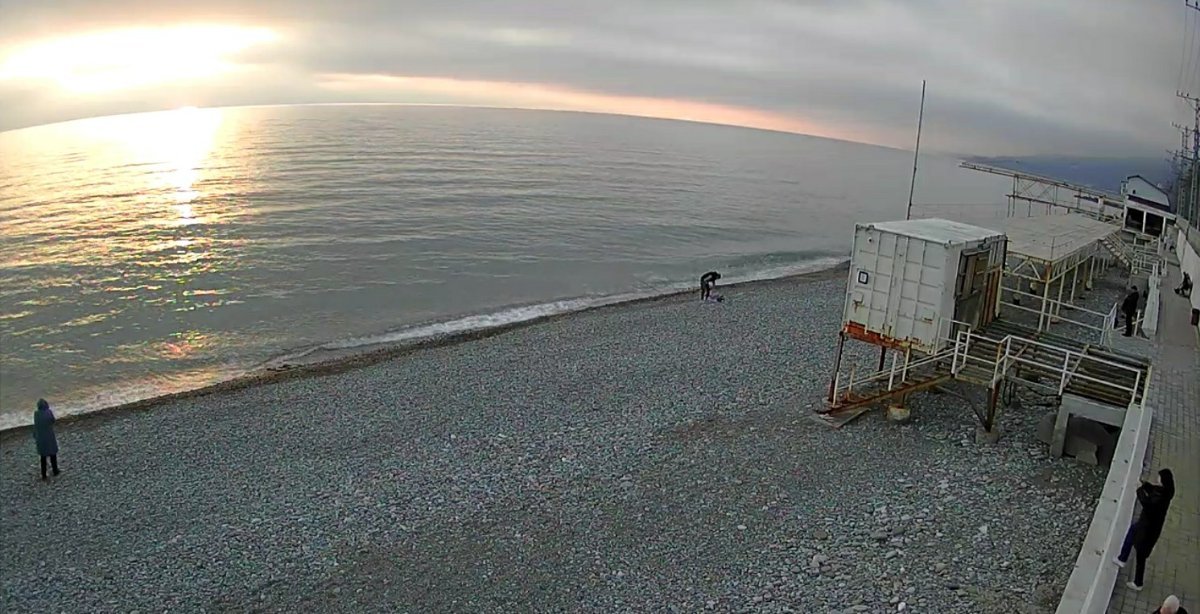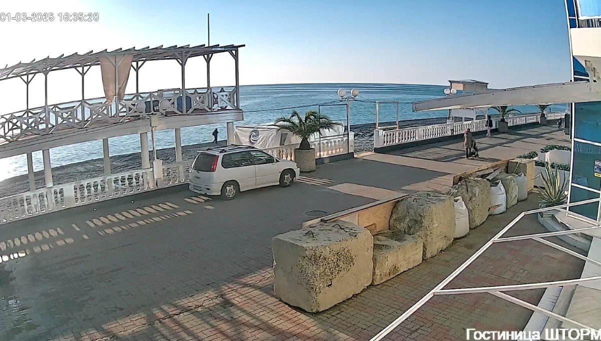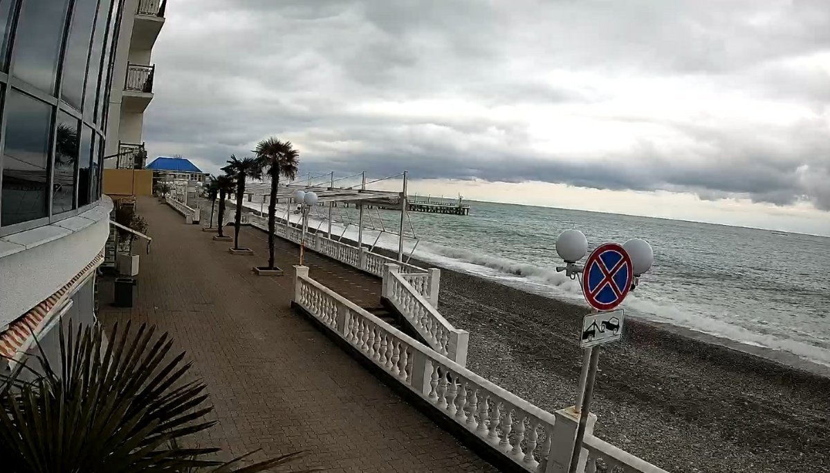 Шторм так и не разыгрался , сегодня солнышко, видимо, тепло, т к люди активно гуляют