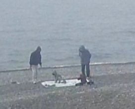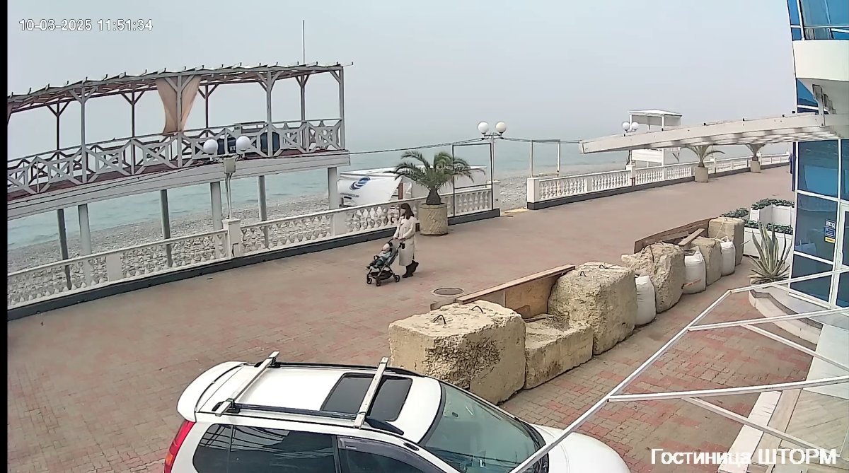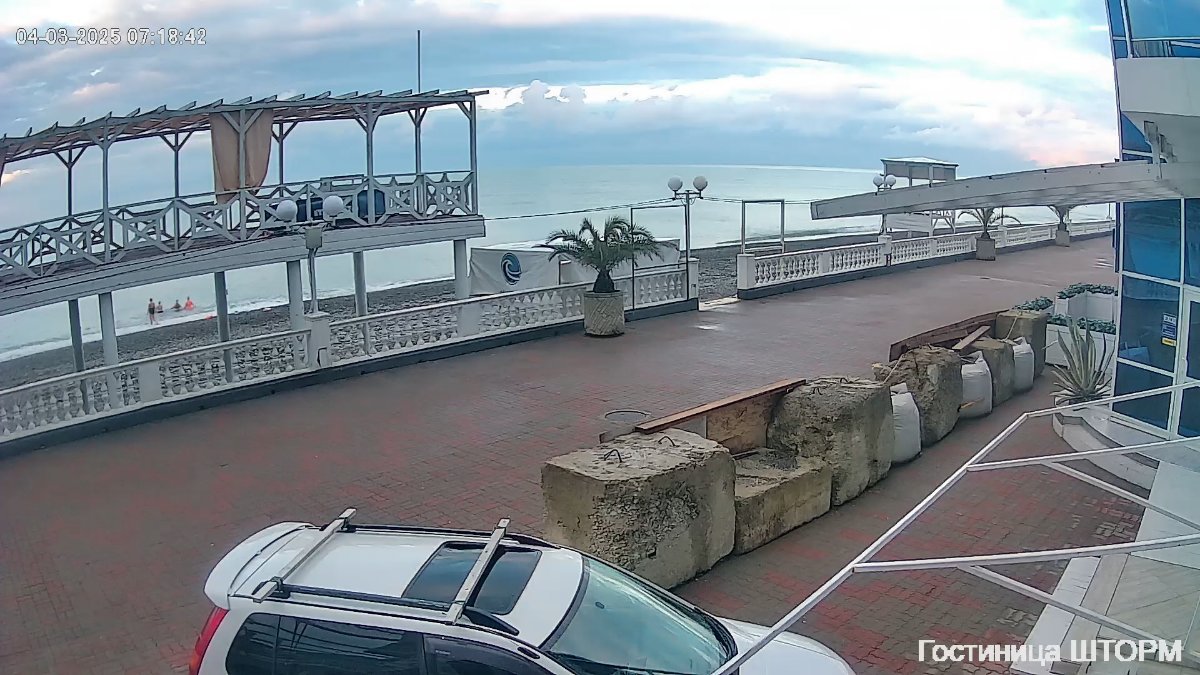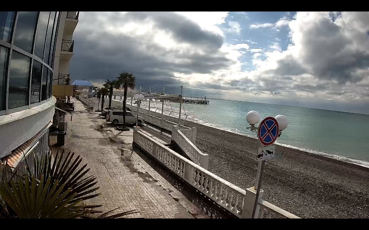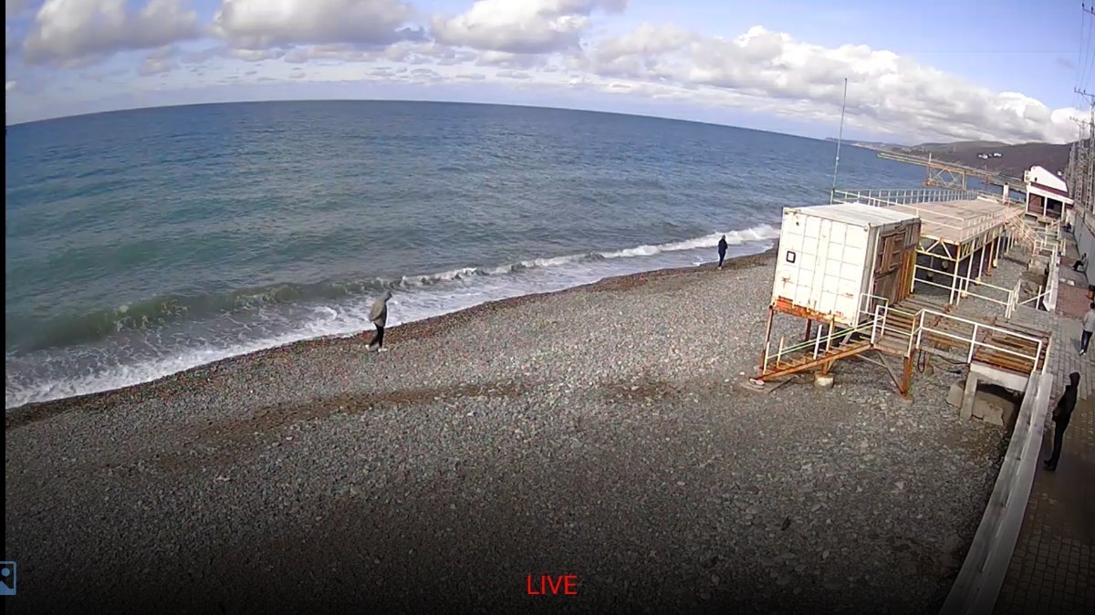 Шторм так и не разыгрался , сегодня солнышко, видимо, тепло, т к люди активно гуляют