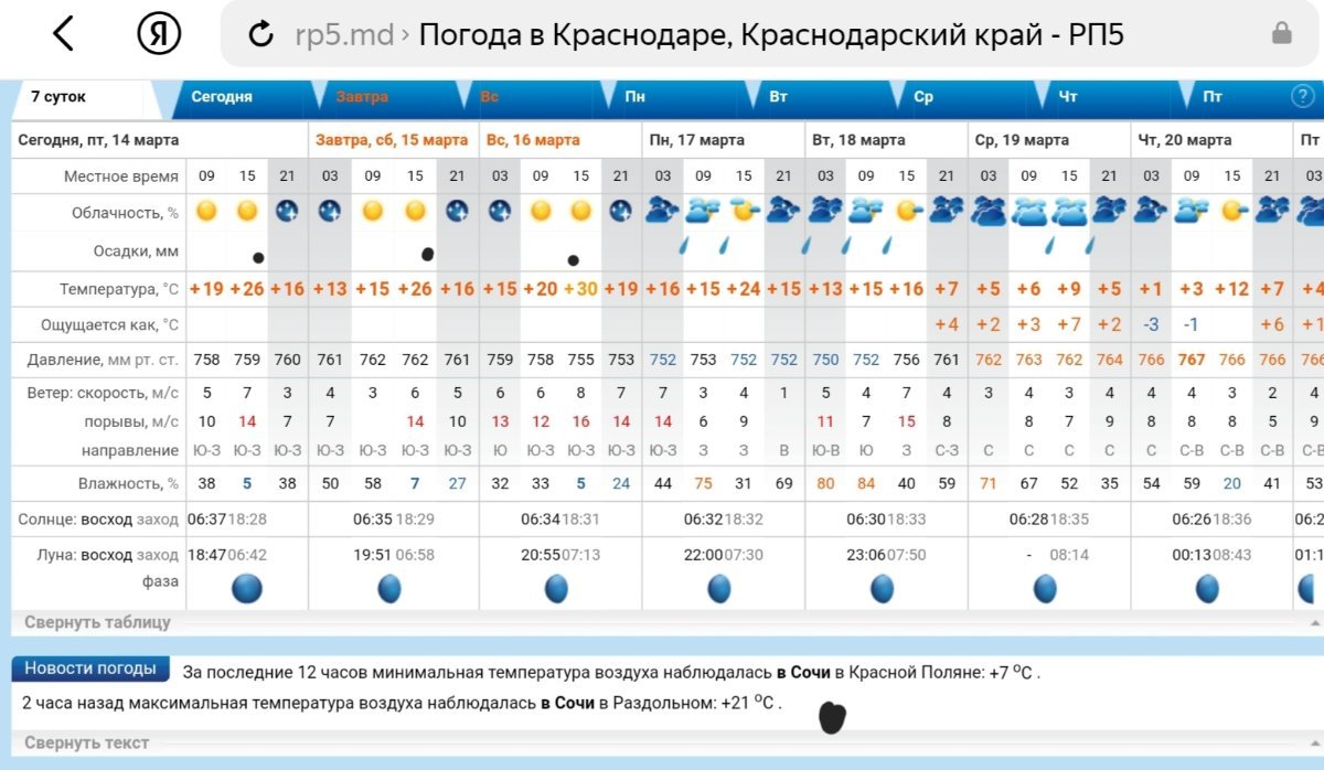 Краснодарский Край ближайшие 5 суток +27+32 градуса , хотя еще 5 суток назад повсеместно был минус и шел снег.