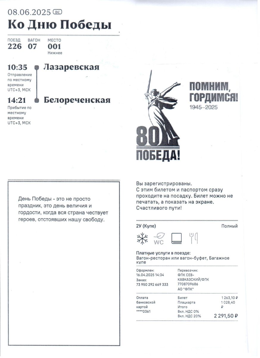 Natavana Опубликовано 16 апреля Опубликовано 16 апреля А я сегодня вот в таком дизайне билеты купила. Мы планируем в Майкоп в этом году на экскурсию. 17 2 "Жизнь слишком коротка, чтобы тратить ее на диеты, жадных мужчин и плохое настроение" Ф.Г. Раневская