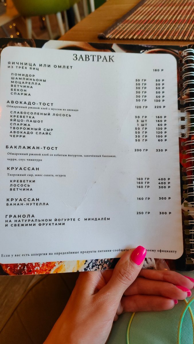 Меню Завтраки можно заказывать целый день, что плюс для тех, кто с детьми