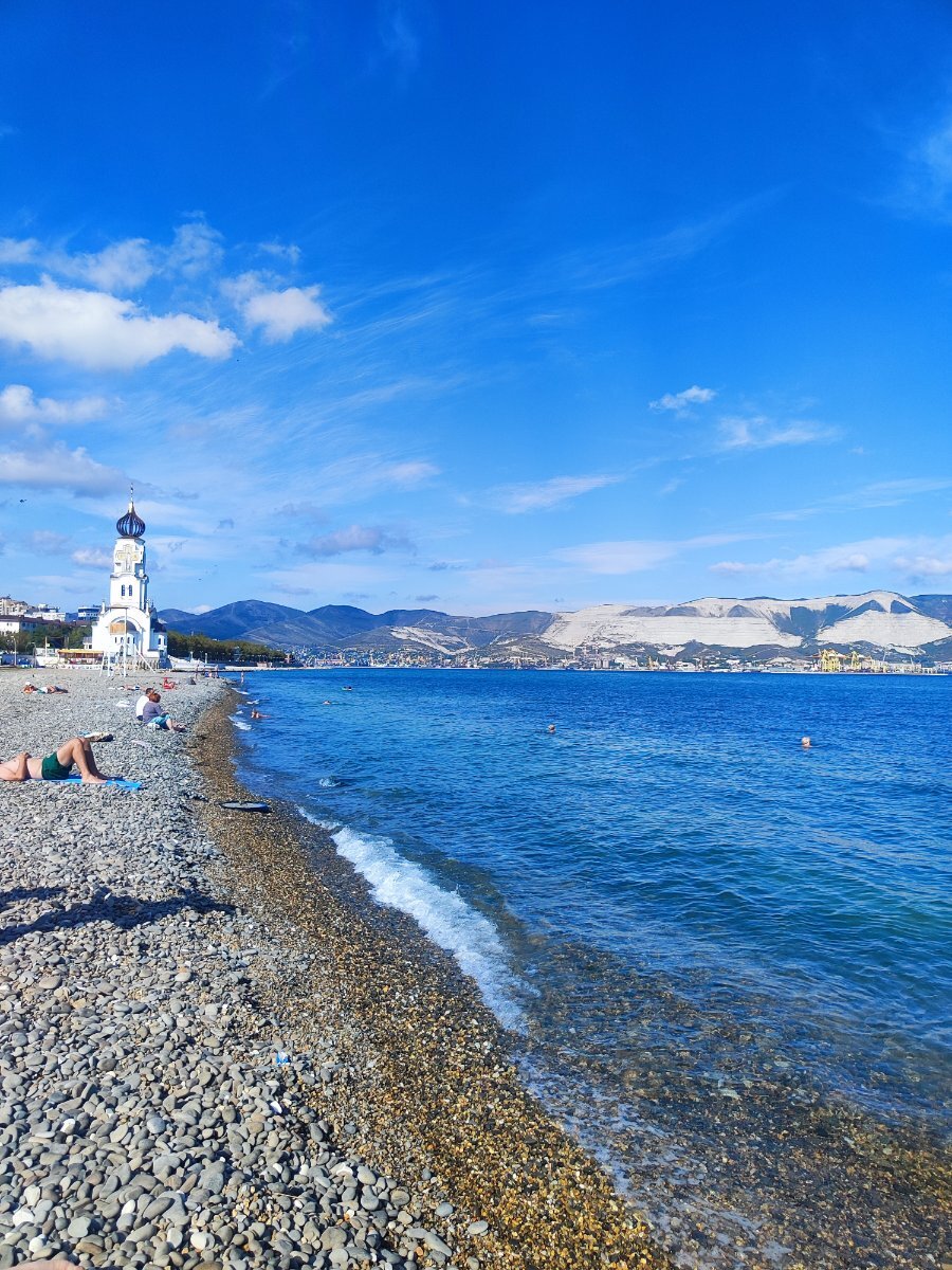Решили мы на недельку съездить в Новороссийск. Сегодня утром приехали на поезде. Очень понравился город, набережная шикарная. Днём купались в море(вода теплее, чем в июне была),а после гуляли по набережной и в парке.