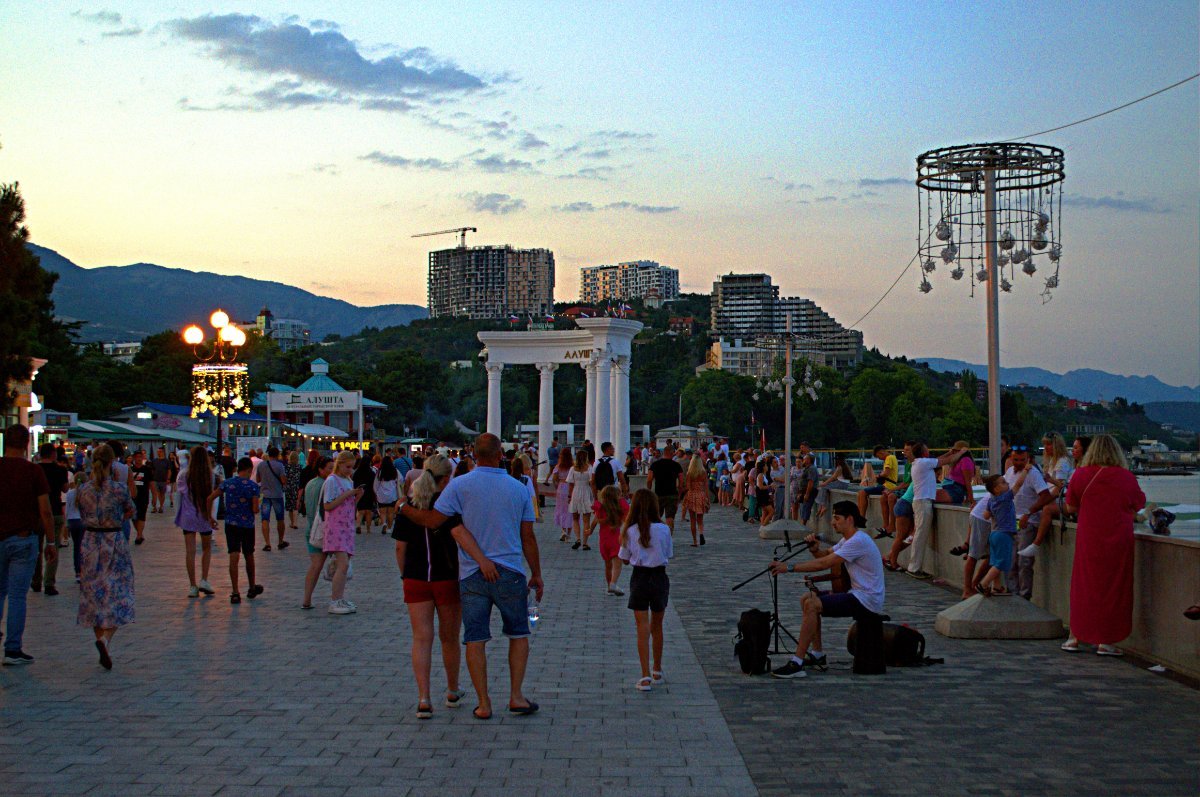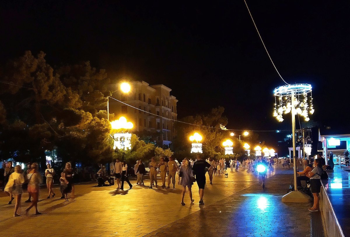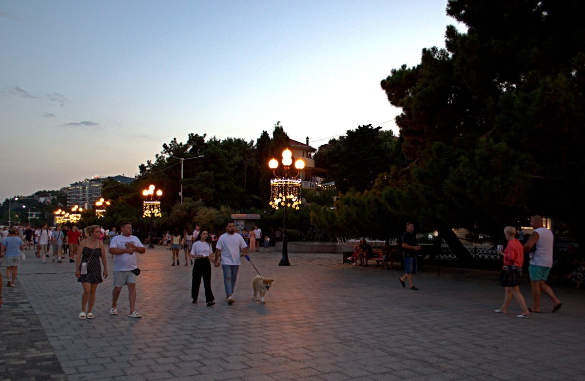 Ну вот ЦЕНТРАЛЬНАЯ набережная в самое цимесное время суток...просто через фотоаппарат(снимал в июле 2023-го) Ну не было там вебок... А ведь кто-то скажет что это мало народа....