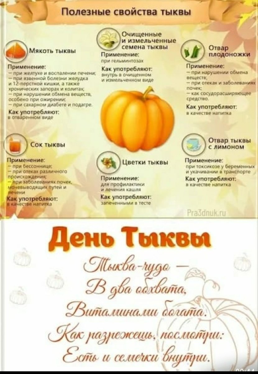 @BAS99 Оно конечно, картошка весчь :dry: Но ресторанный суп-пюре из тыквы... Мммм... А маленькие фаршированные тыквочки из духовки... А овощное рагу с тыквой. А варенье из оранжевой тыквы с апельсином. И протчая, и протчая...