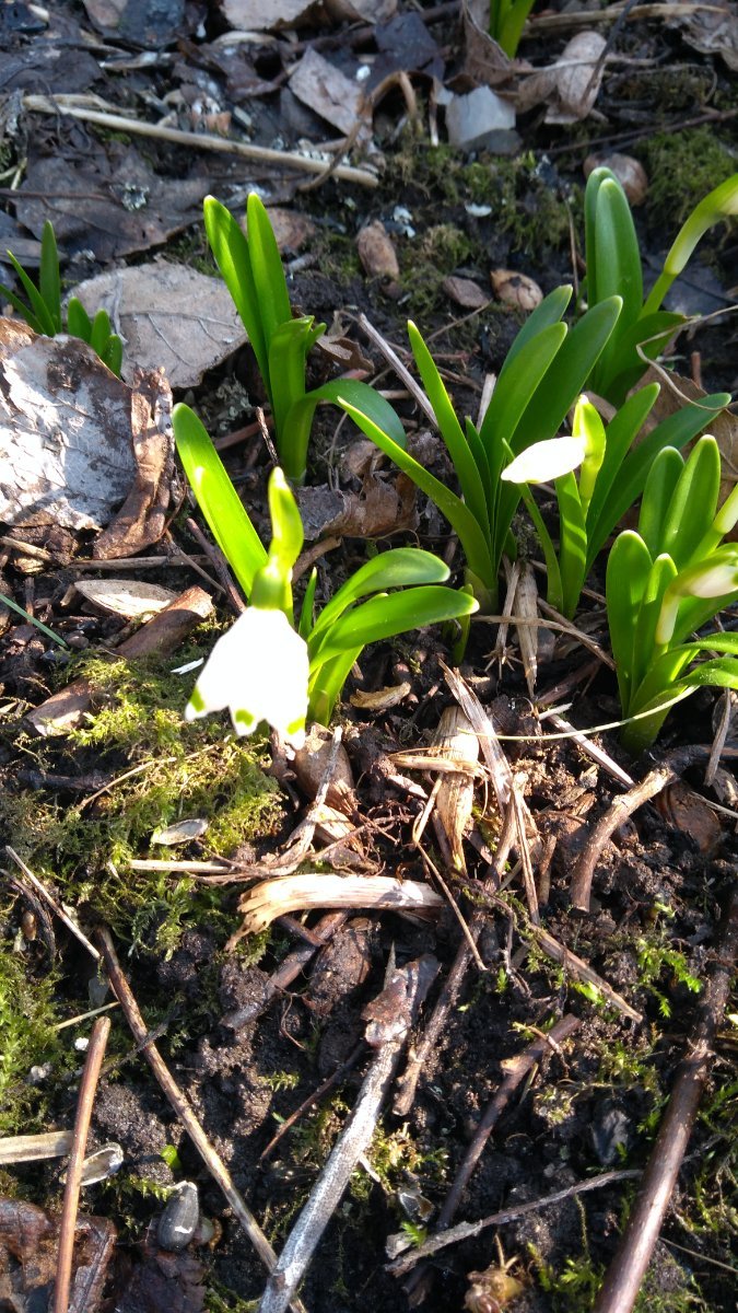 Сегодня не выдержала натиска хорошей погоды и в первый раз в этом году съездила на дачу. Как никогда, снег полностью сошёл с нашего участка, подснежники пробились. Обычно это случается в апреле. Но земля промерзшая, заметила на клумбе пару обнажившихся луковиц тюльпанов - и не смогла их запихнуть обратно :dry: