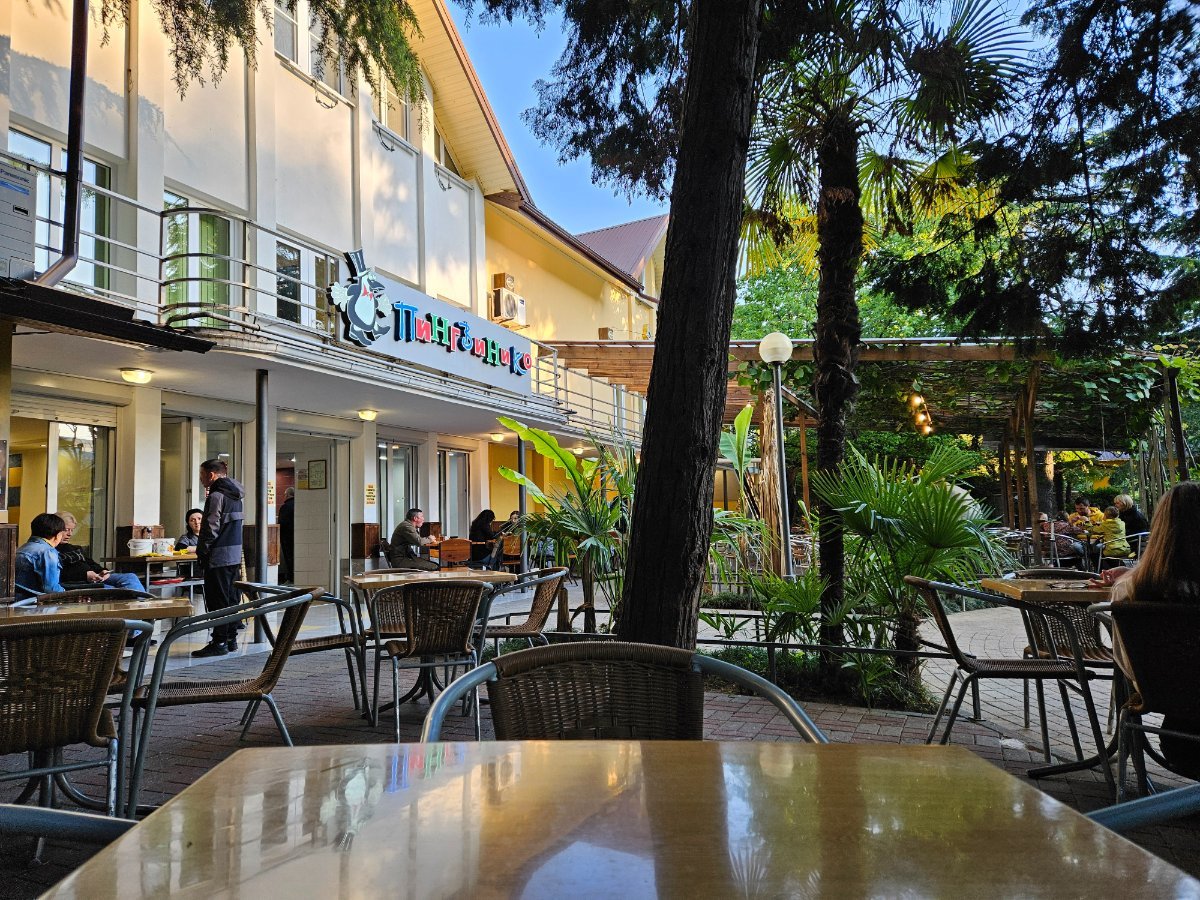Мы сюда добрались ). Народу немного. Муж пошел за чебуреками, я сижу за столиком, жду.